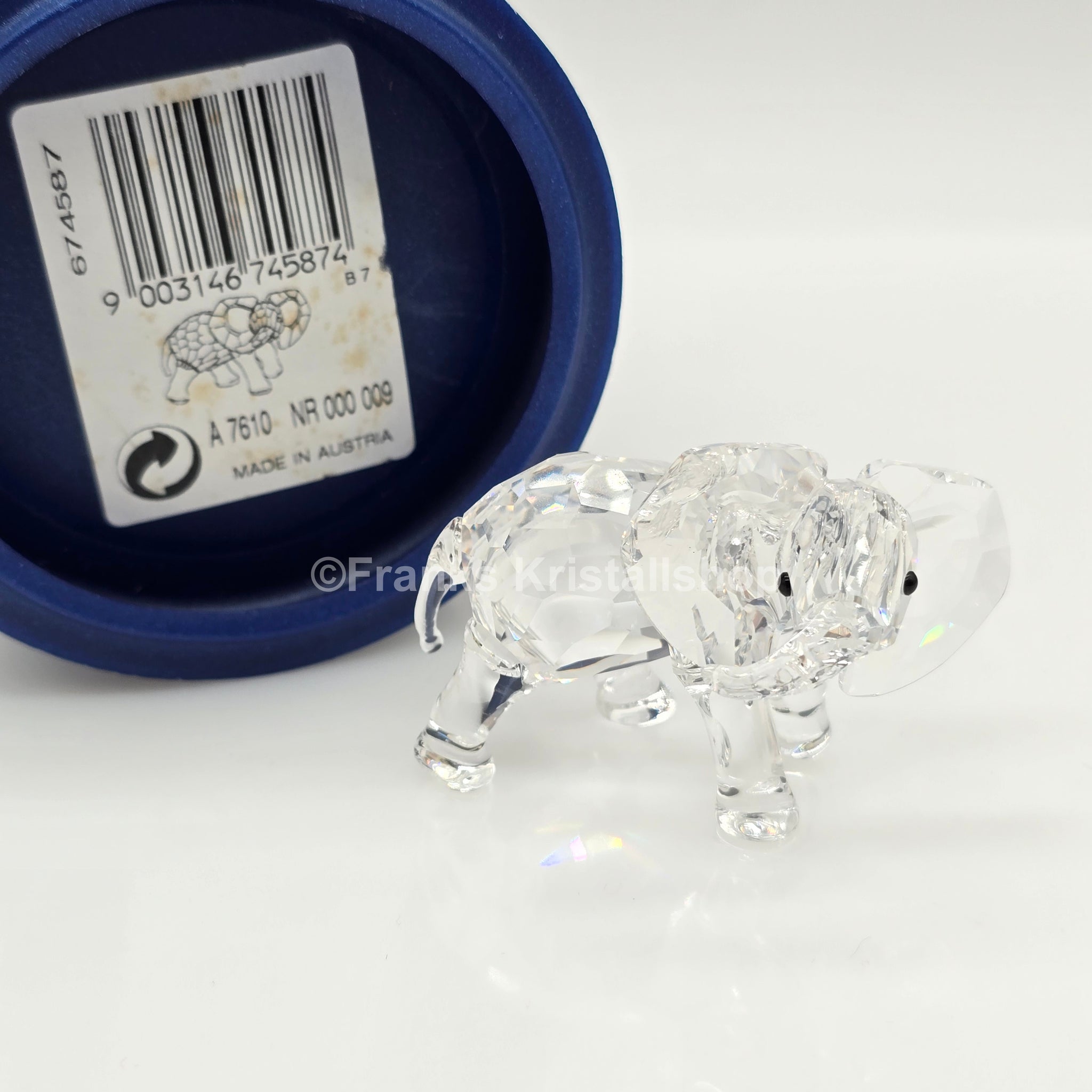 Der kleine Elefant aus der Themengruppe "Seltene Begegnungen" streckt neugierig seinen Rüssel nach rechts. Die Figur symbolisiert Weisheit und Glück und wurde meisterhaft aus klarem Kristall gefertigt. Er ist ein atemberaubendes Stück und eine wertvolle Ergänzung für jede Swarovski-Sammlung.