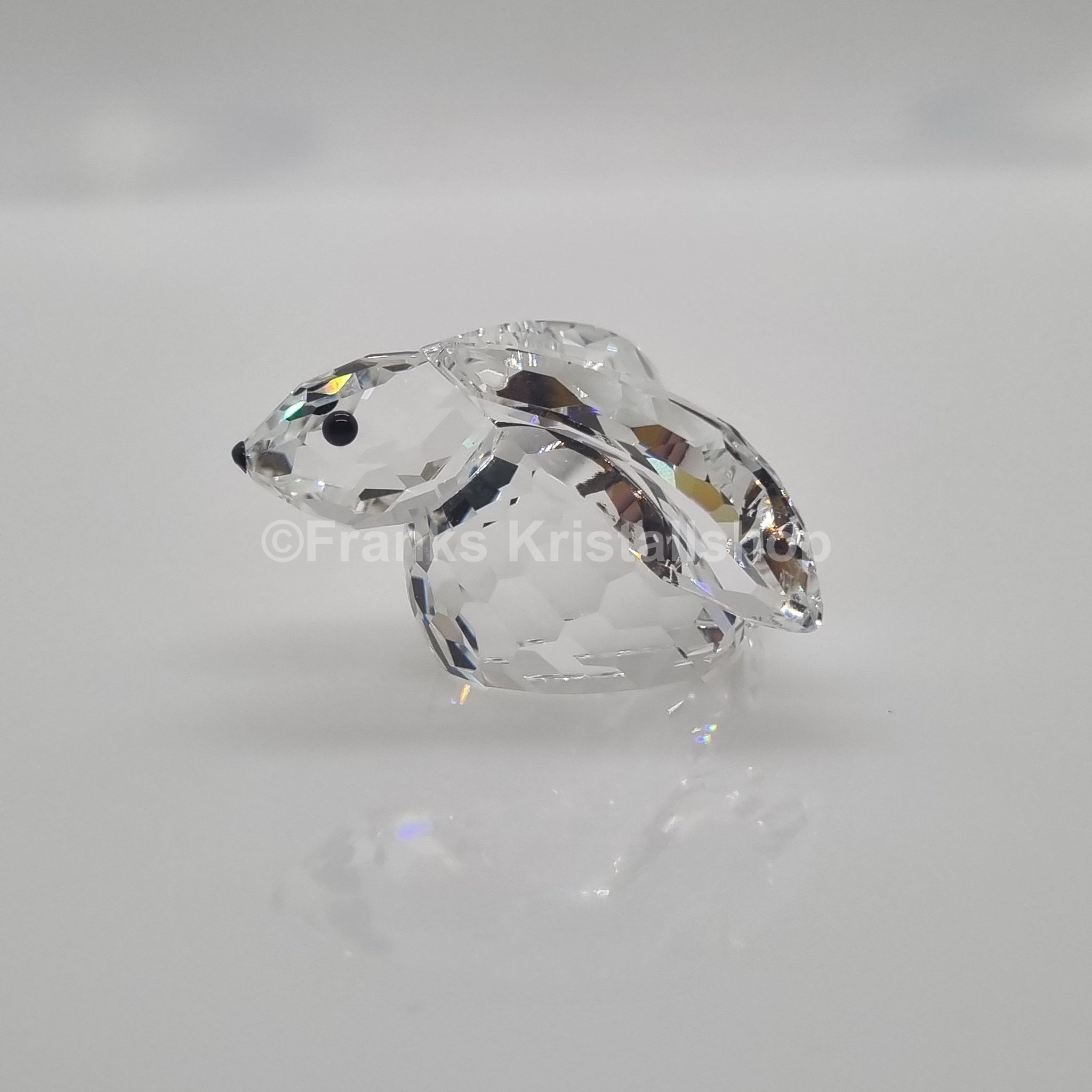 Das Häschen war Teil der Kollektion „Auf einer Sommerwiese“. Die sehr langen nach hinten gelegten Ohren verleihen der Figur einen wachsamen, liebevollen Ausdruck. Gefertigt aus klarem Kristall mit schwarzen Augen, besticht das Kaninchen durch seine zarte, naturgetreue Ausstrahlung.
