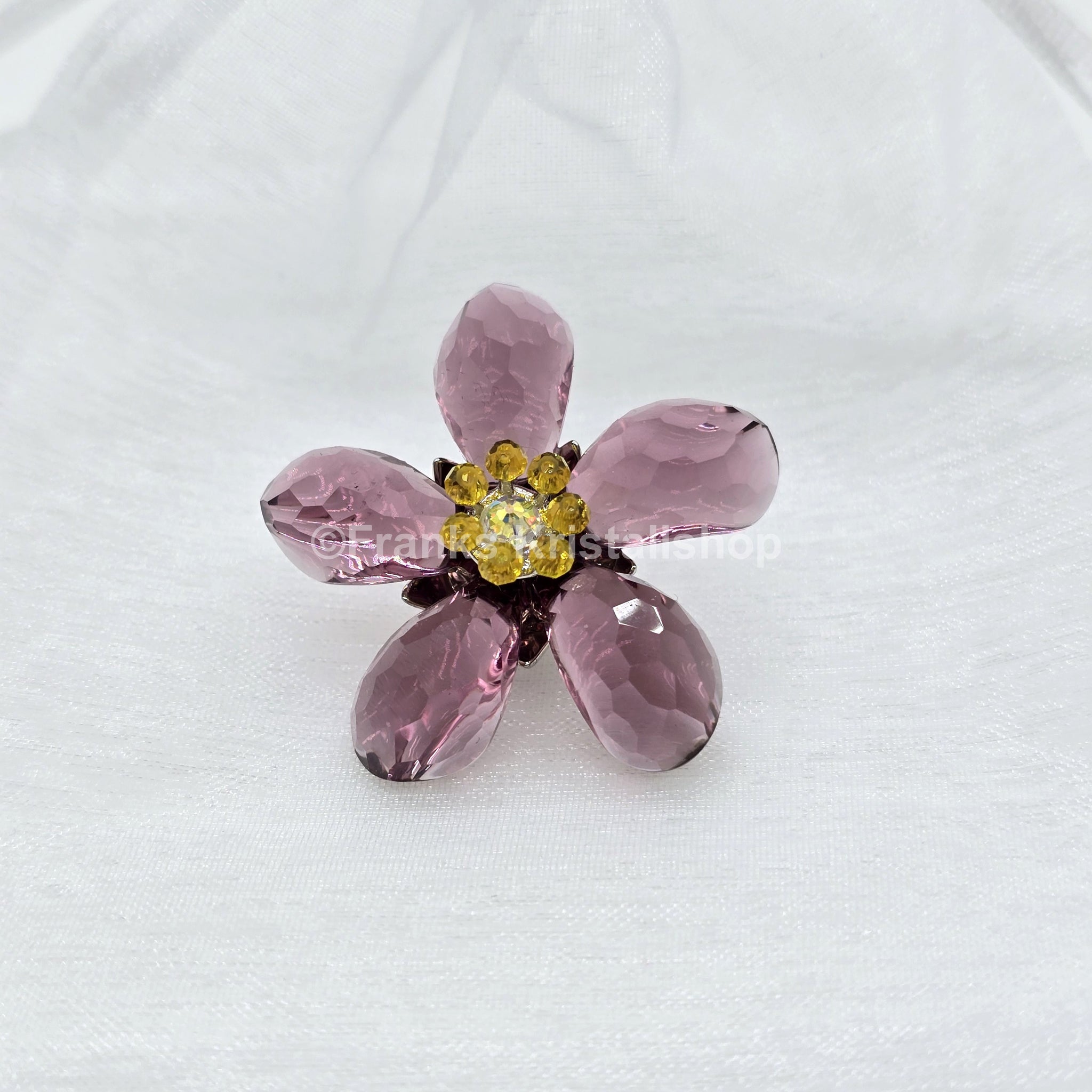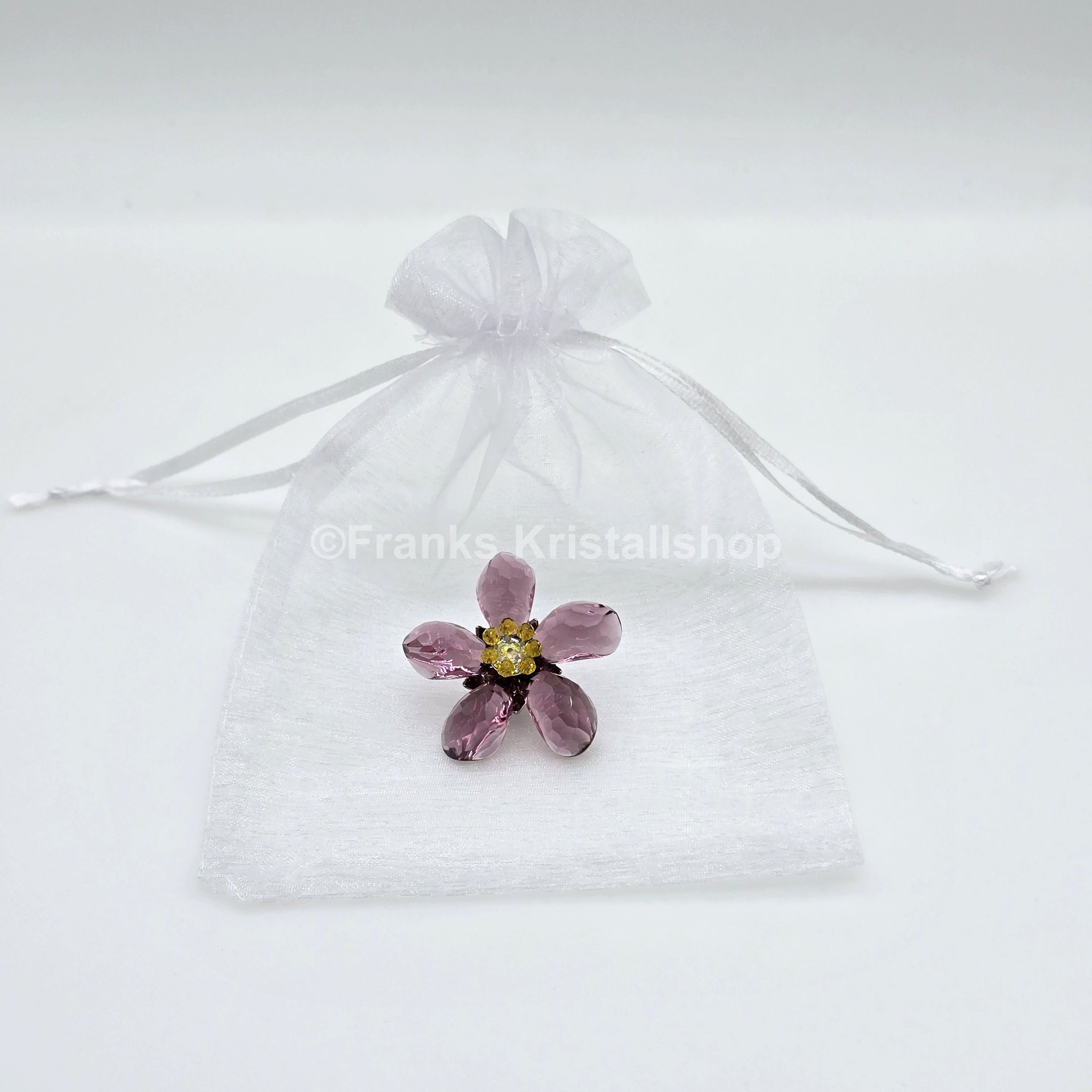 Die Blume Deoli gehört zur Kollektion „Exotische Blumen“ und hat eine Amethyst Farbe. Diese Blüte wird mit einem Magnet an einem Metallstiel befestigt. Dieser Stiel ist hier nicht vorhanden. Die Blüte hält aber - wie auch die Garden Tales Magnete - an jeder Metalloberfläche.