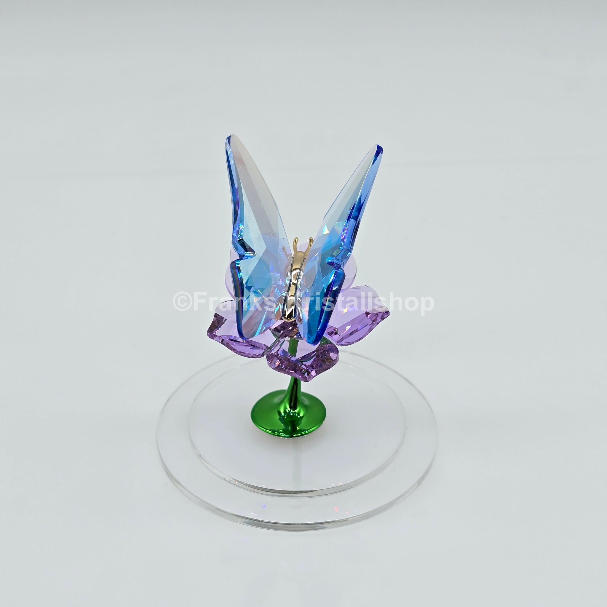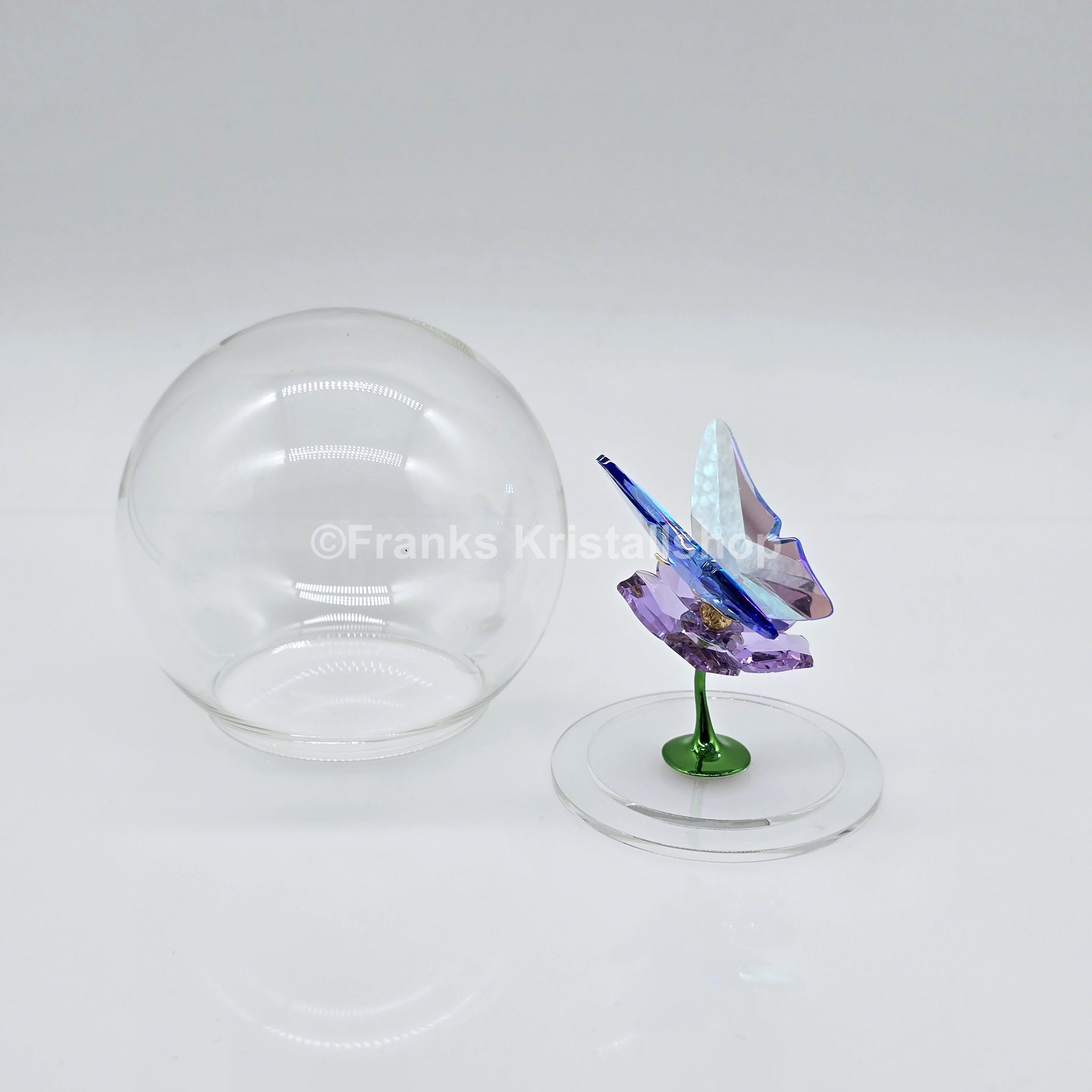 In dieser kunstvollen Glaskugel scheint ein Schmetterling schwerelos zu schweben und verleiht der Szene eine sanfte, lebendige Dynamik. Die zahlreichen Facetten bringen die leuchtend blauen Flügel mit Schimmereffekt, die zarte violette Blüte und die glänzenden Metallelemente eindrucksvoll zur Geltung. Ein harmonisches Zusammenspiel, das dieses Stück zu einem faszinierenden Highlight für jeden Swarovski Fan macht.