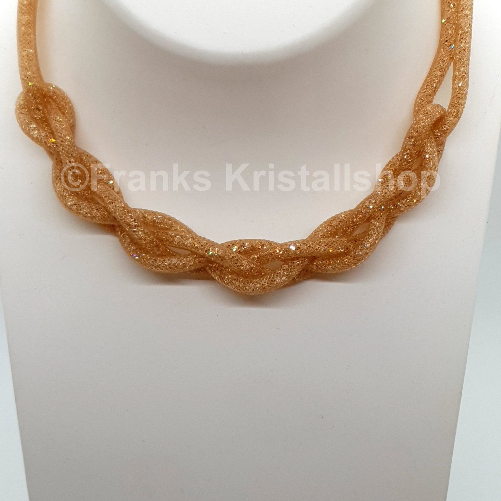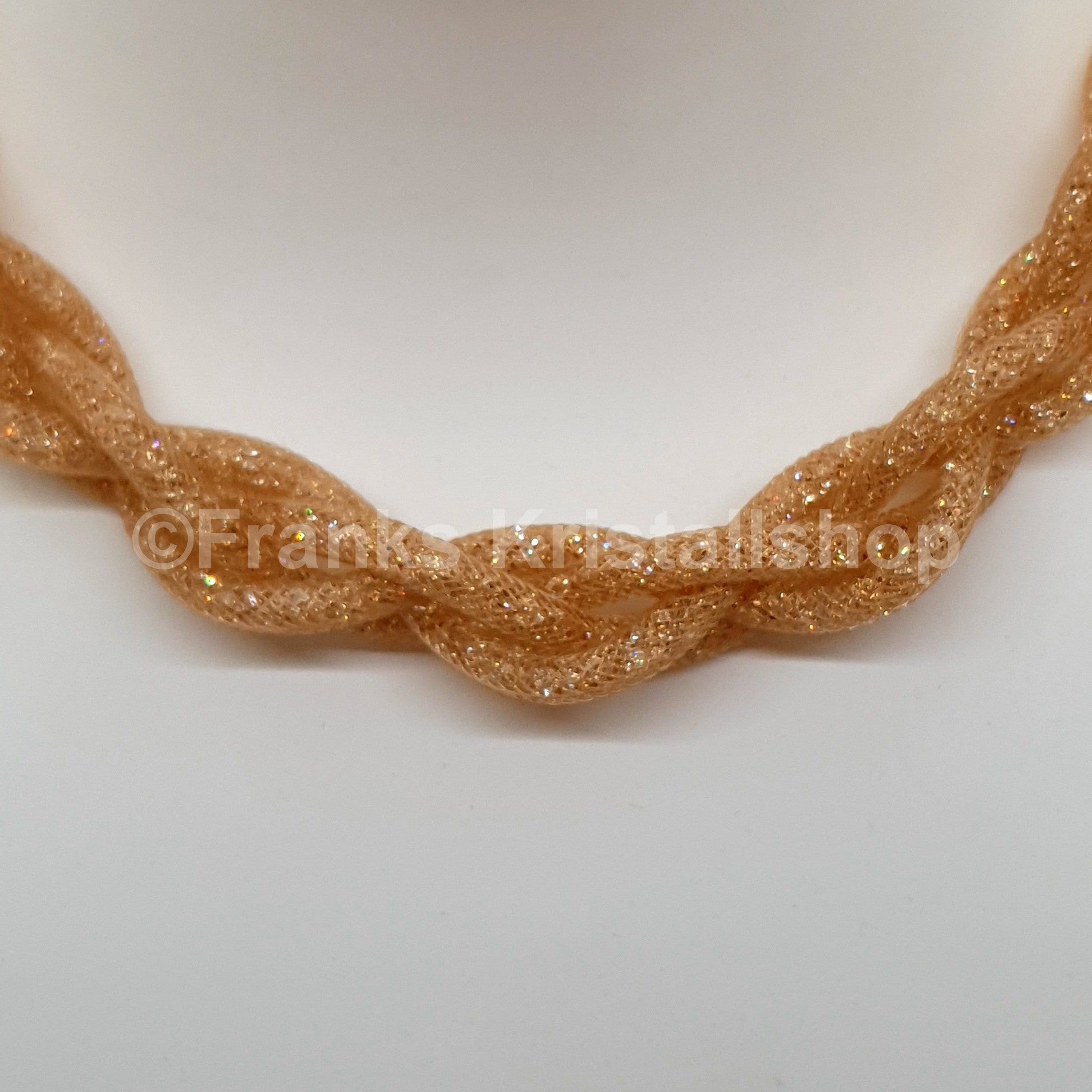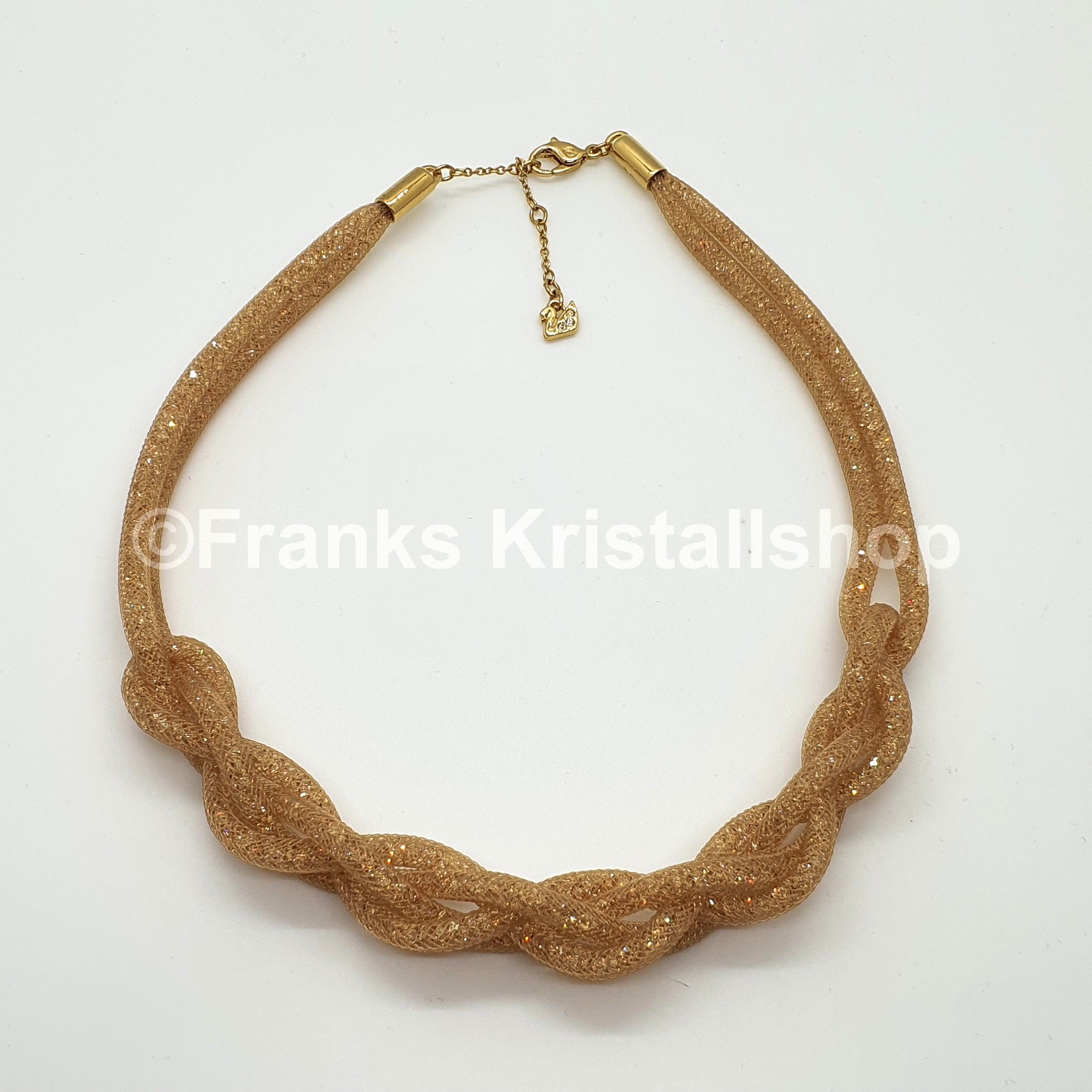 Diese faszinierende, geflochtene Version ergänzt die beliebte Stardust-Armbandkollektion. Die Halskette besteht aus einem goldfarbenen, röhrenförmigen Netz, das unzählige funkelnde Kristalle in harmonischen Farbtönen fasst und so einen eleganten Glanz erzeugt. Die 38 cm lange Kette wird durch einen verstellbaren Palladium-Verschluss abgerundet.