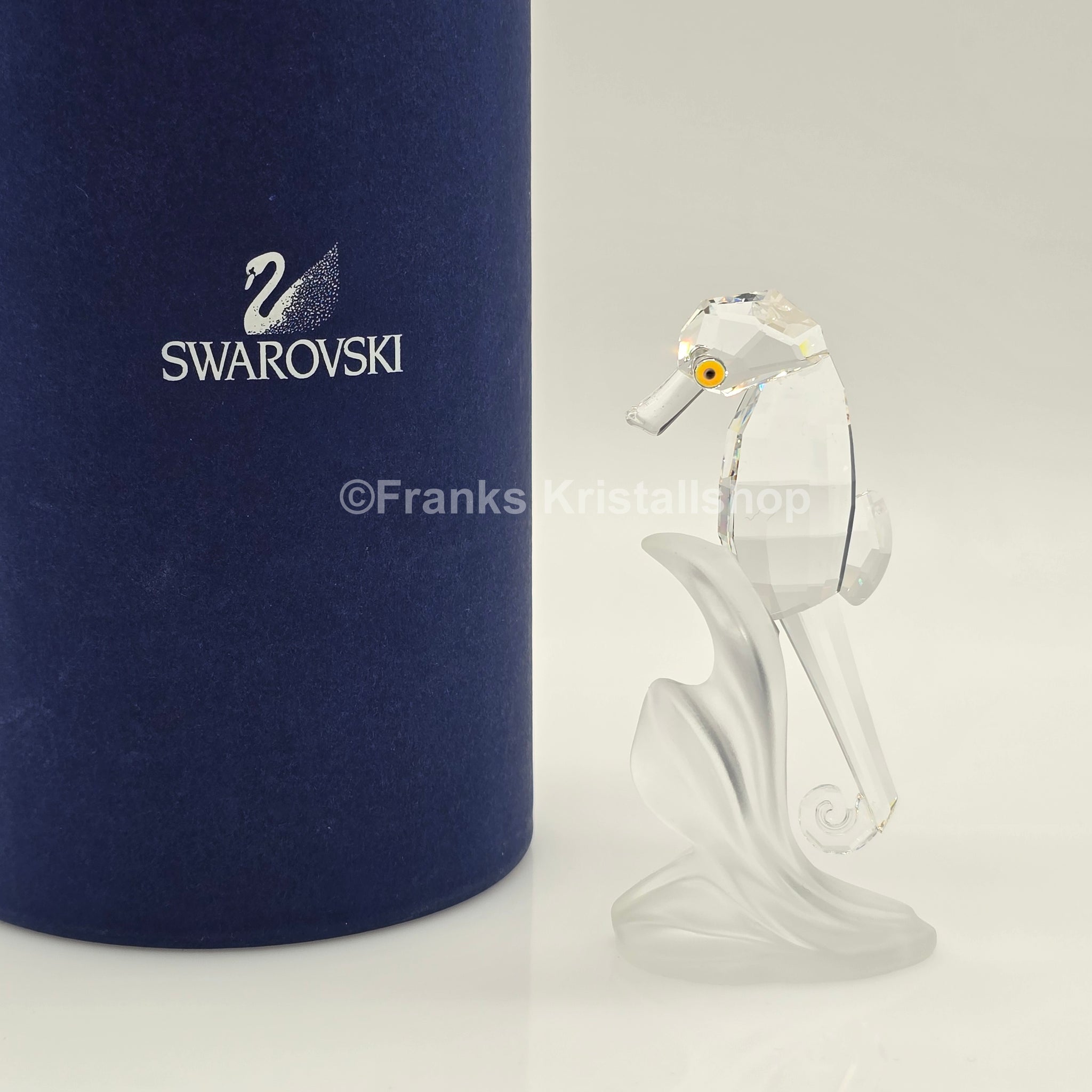 Dieses Seepferdchen war Teil der Themengruppe "Wasserwelten" und ist 7.8 cm hoch. Die klare Kristallfigur wird in der Originalverpackung verkauft.