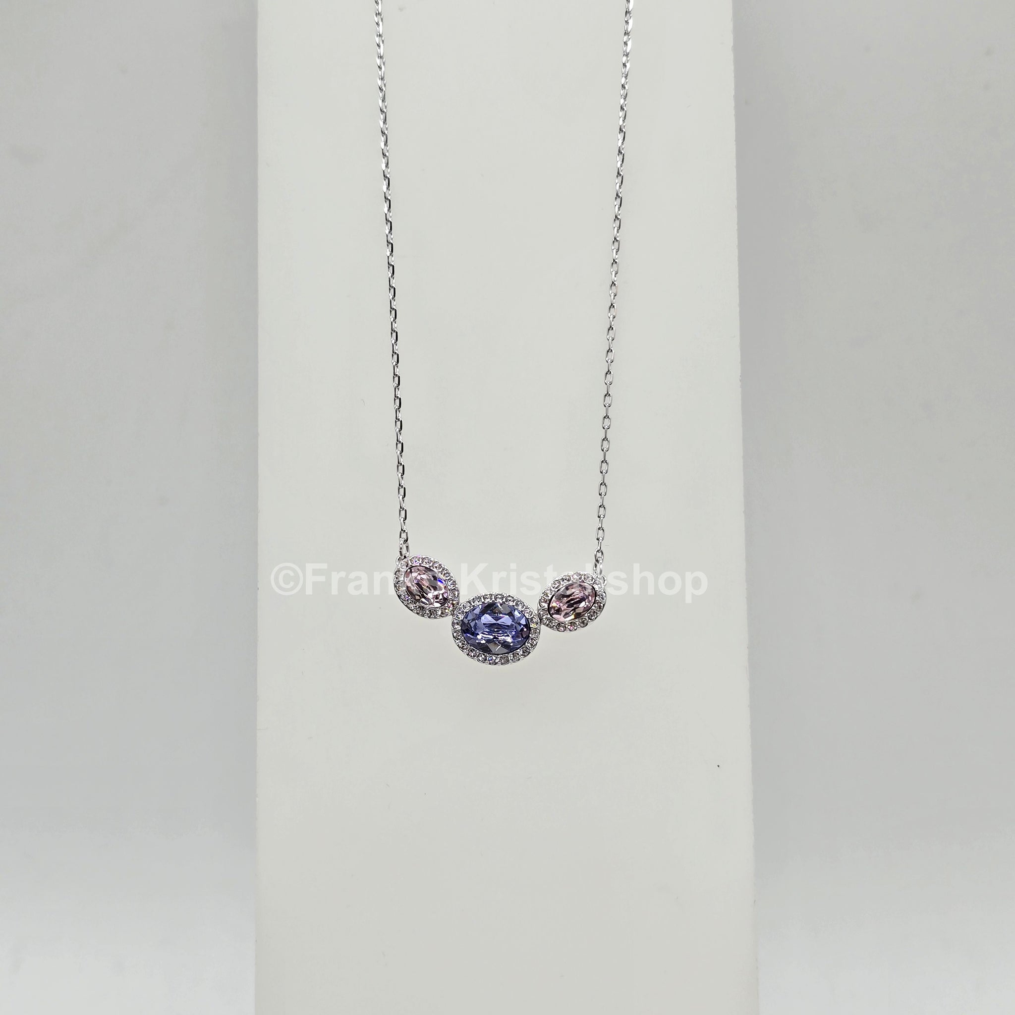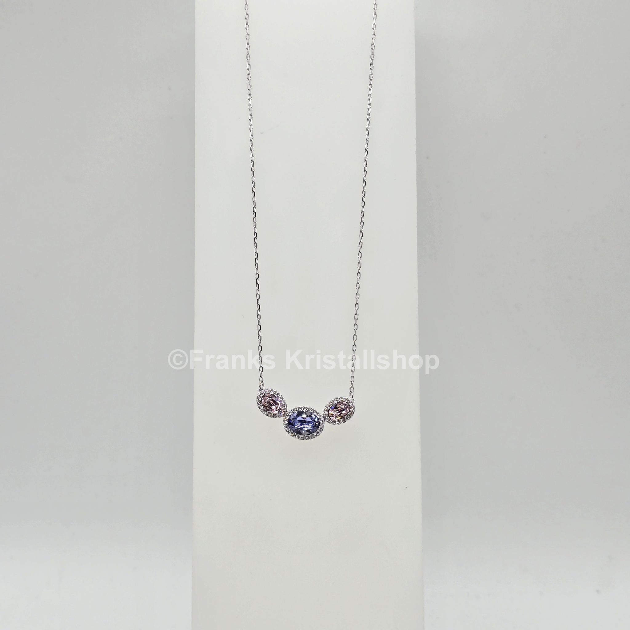 Von zarten Frühlingsblumen inspiriert, vereint diese Halskette feminine Eleganz und funkelnde Leichtigkeit. Drei pastellfarbene Kristalle in rosa und violetten Tönen erstrahlen in rhodinierten, ovalen Fassungen, die von klarem Kristallpavé umrahmt sind. Perfekt für festliche Anlässe und ein wahrer Blickfang.