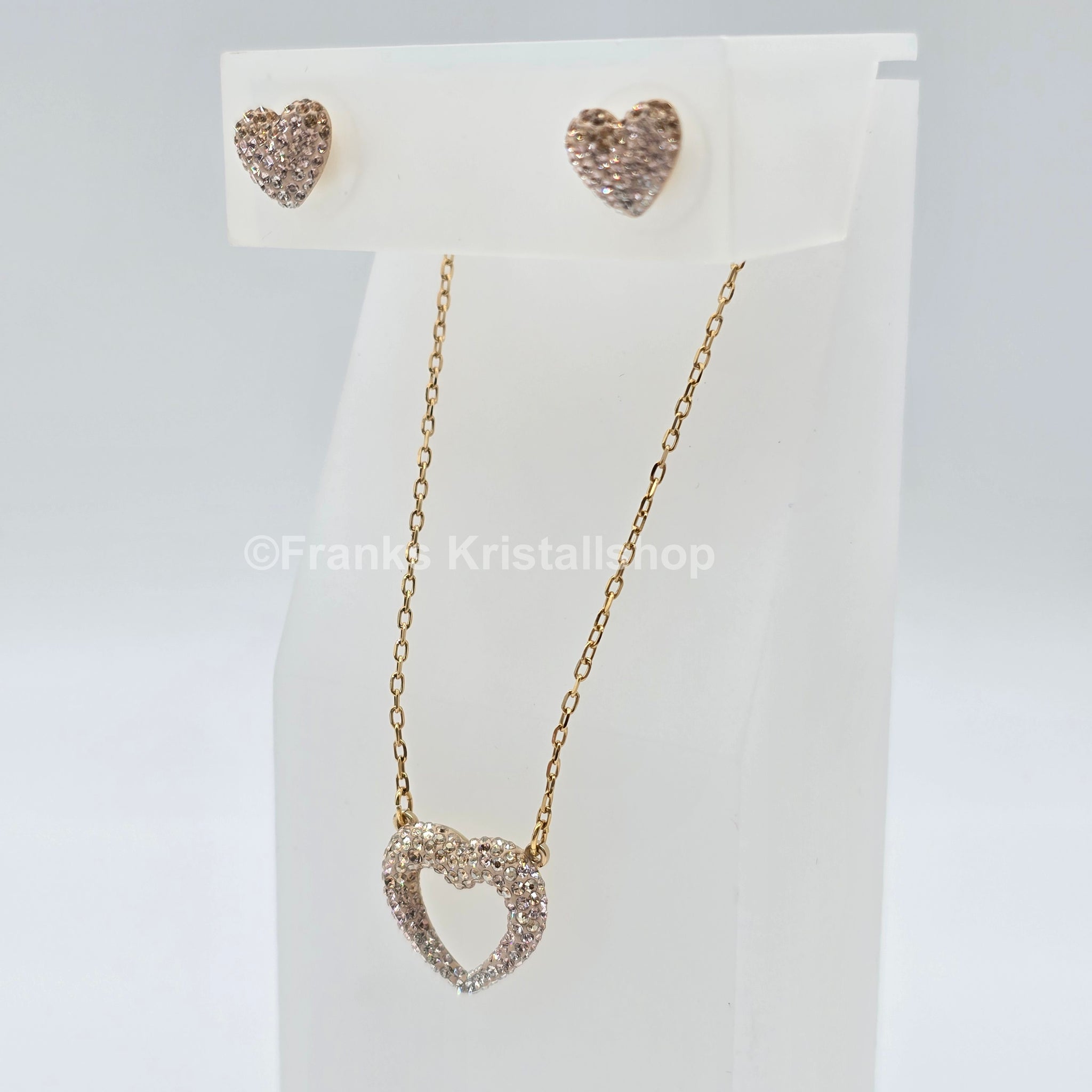 Swarovski Enjoy Set Herz Halskette und Ohrringe, Vergoldet.