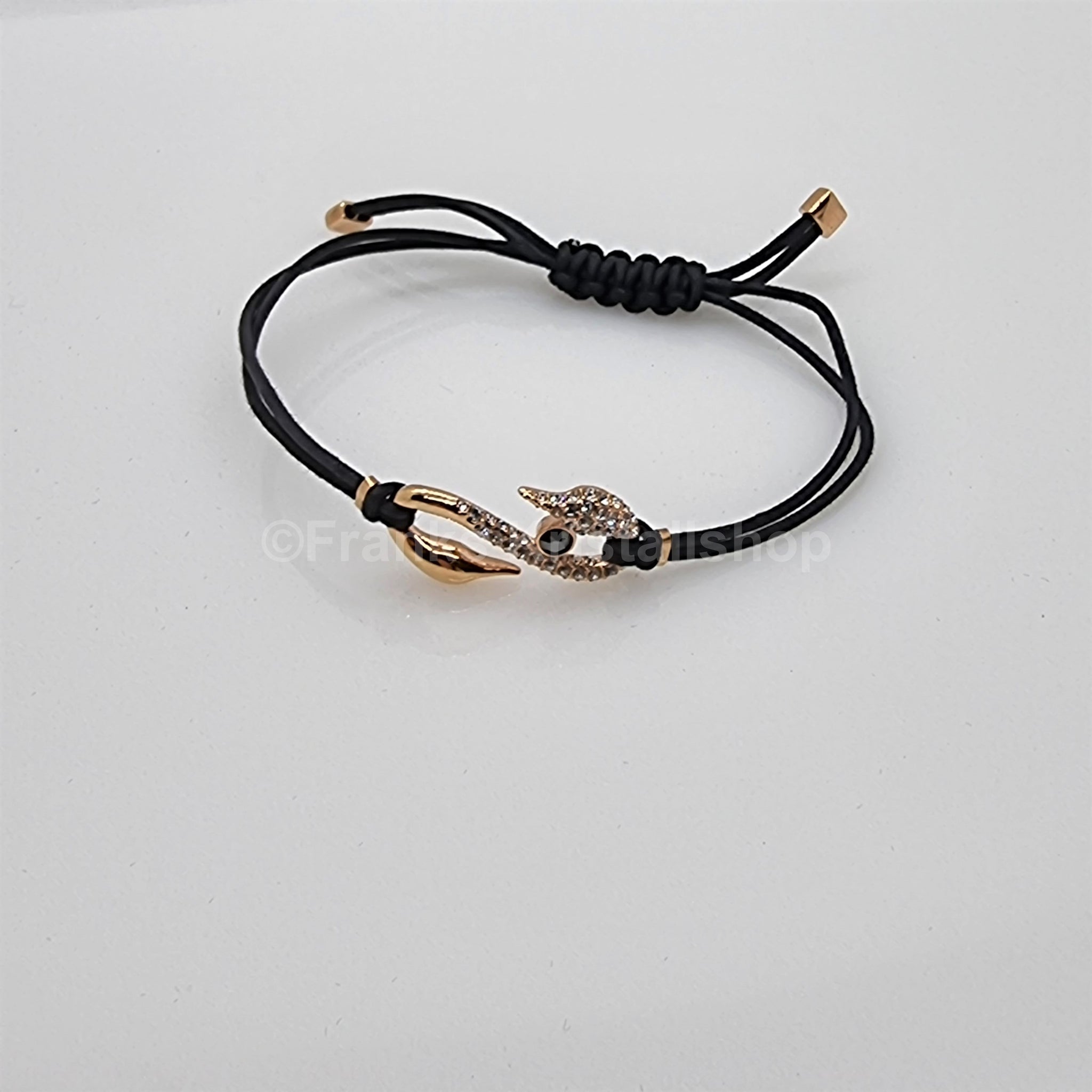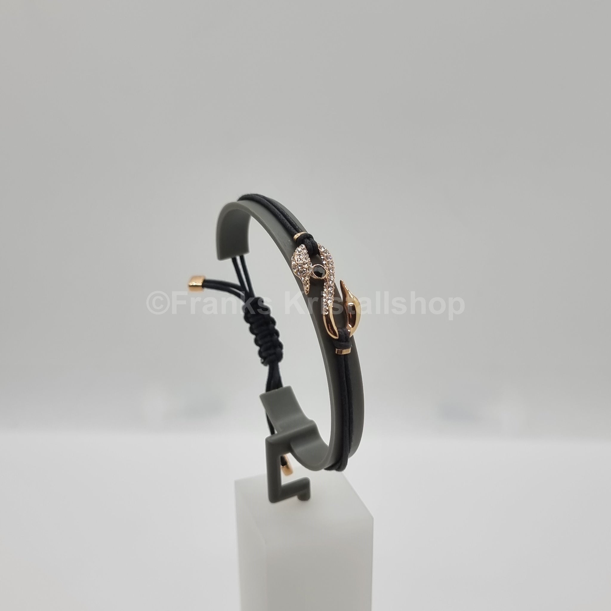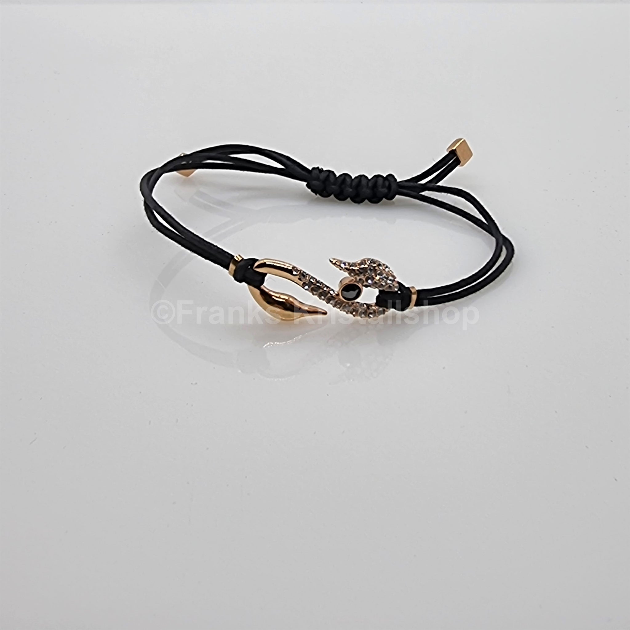 Die Baumwollkordel in schwarz lässt sich mittels Zugmechanismus bequem in der Größe verstellen. Das rosévergoldete S-Hook mit funkelnden Kristallen ist vom Schwan, dem bekannten Swarovski Logo, inspiriert.
