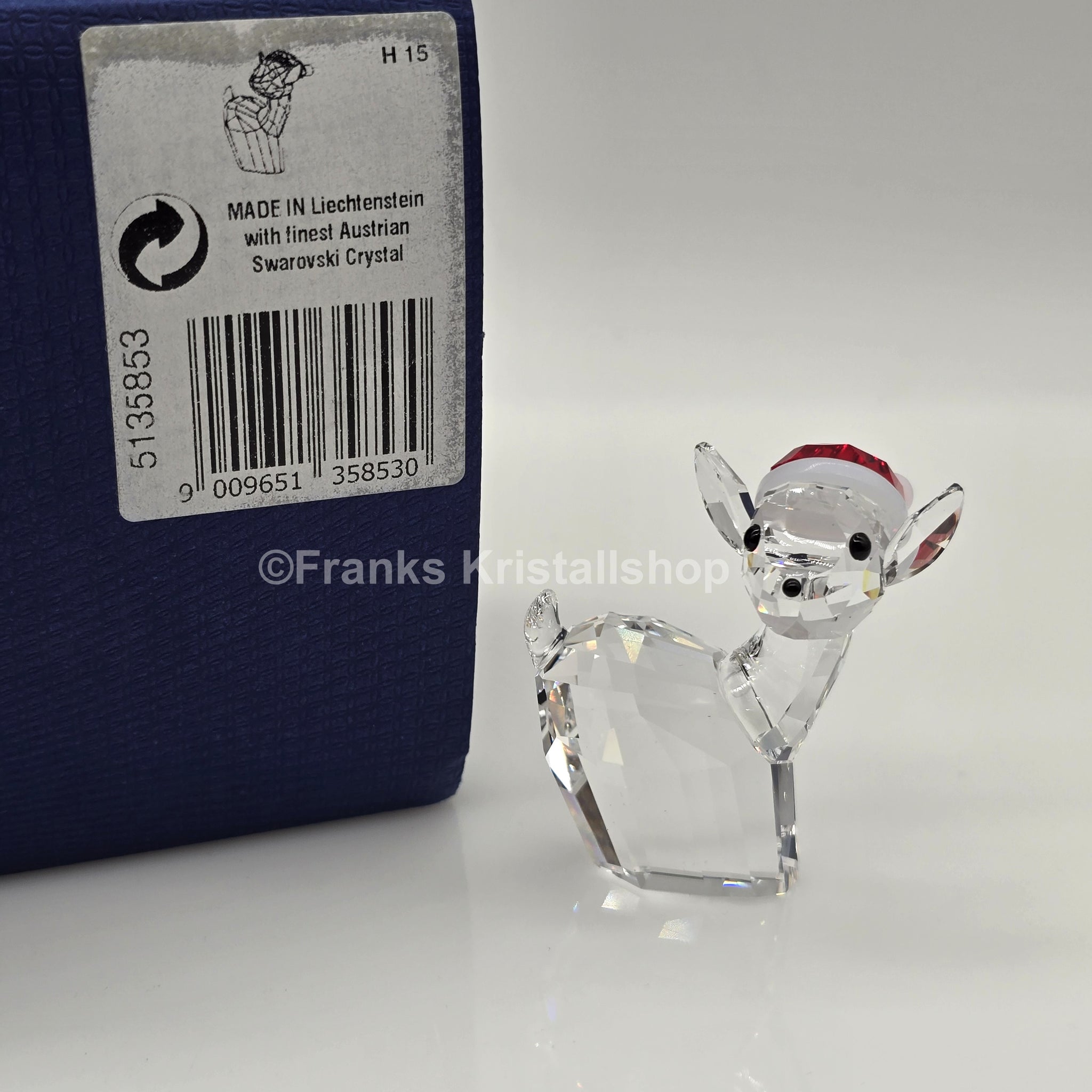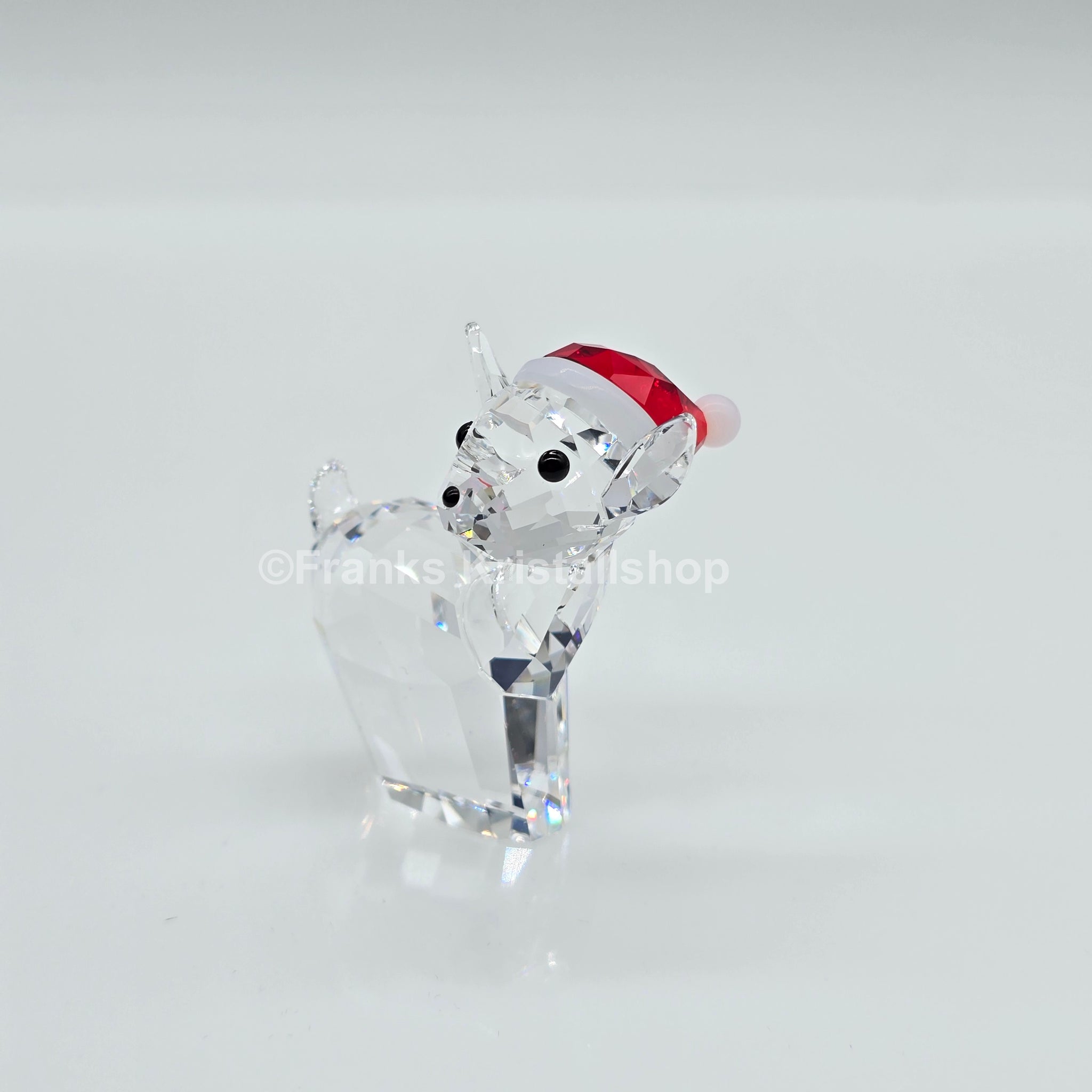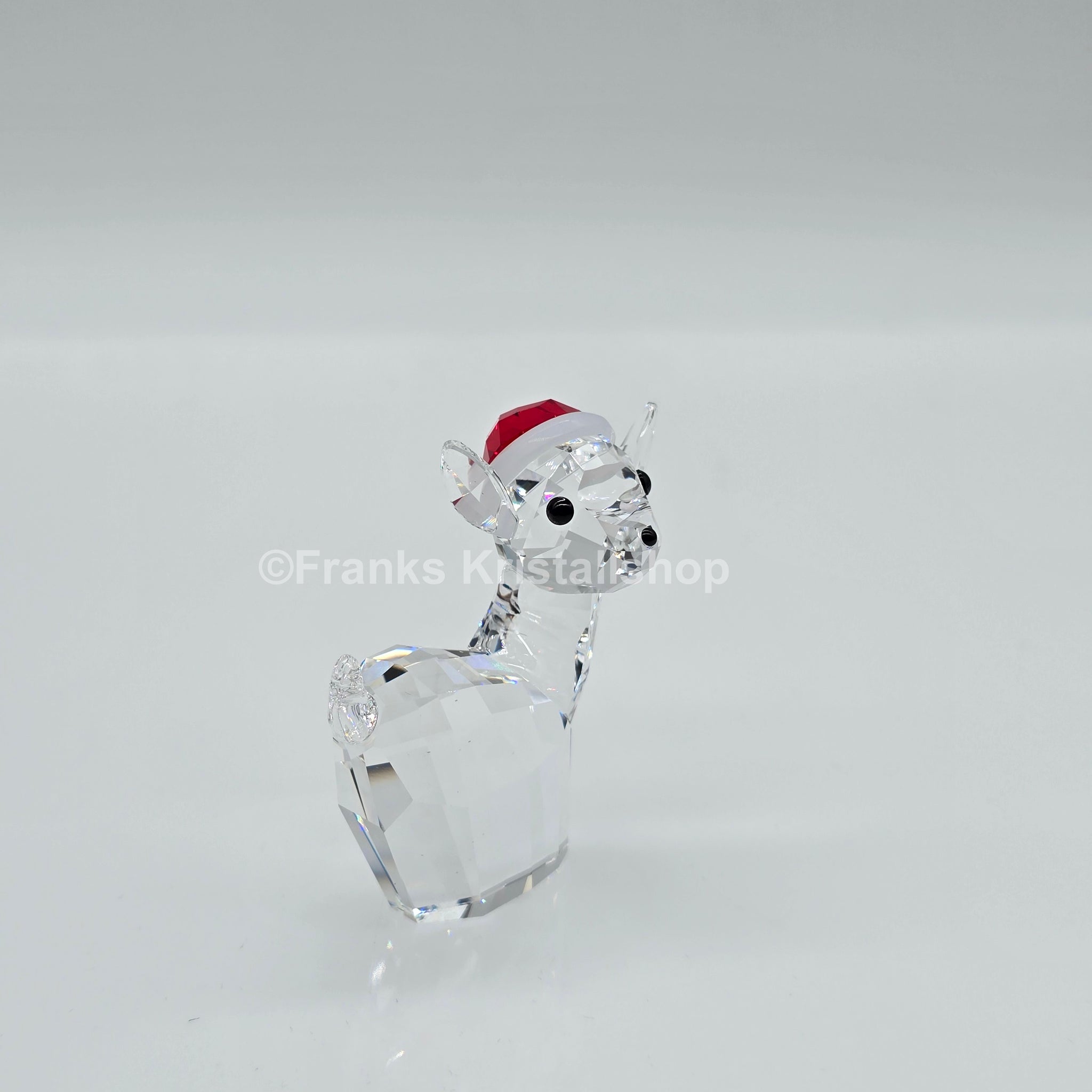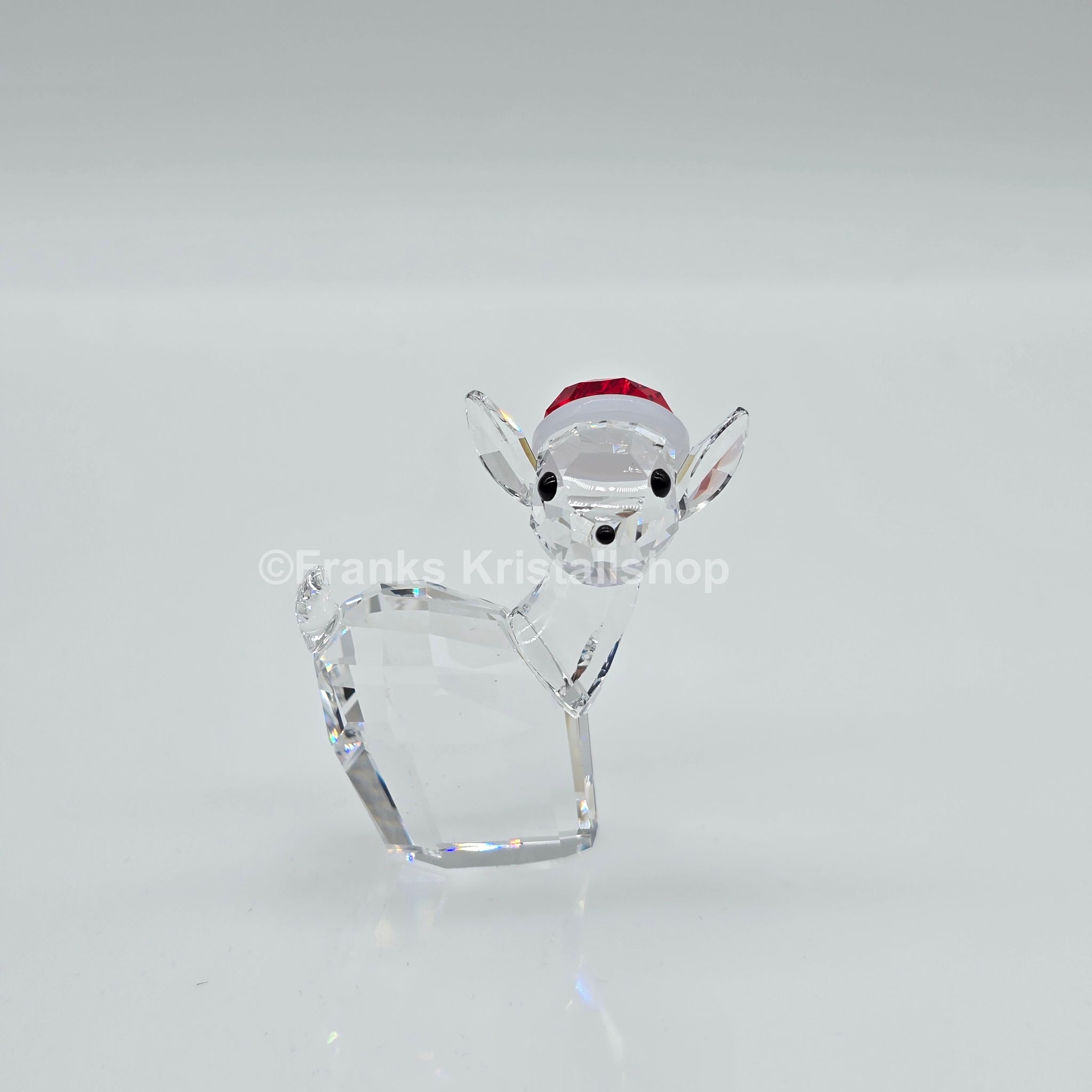 Swarovski Rentier mit Weihnachtsmütze.