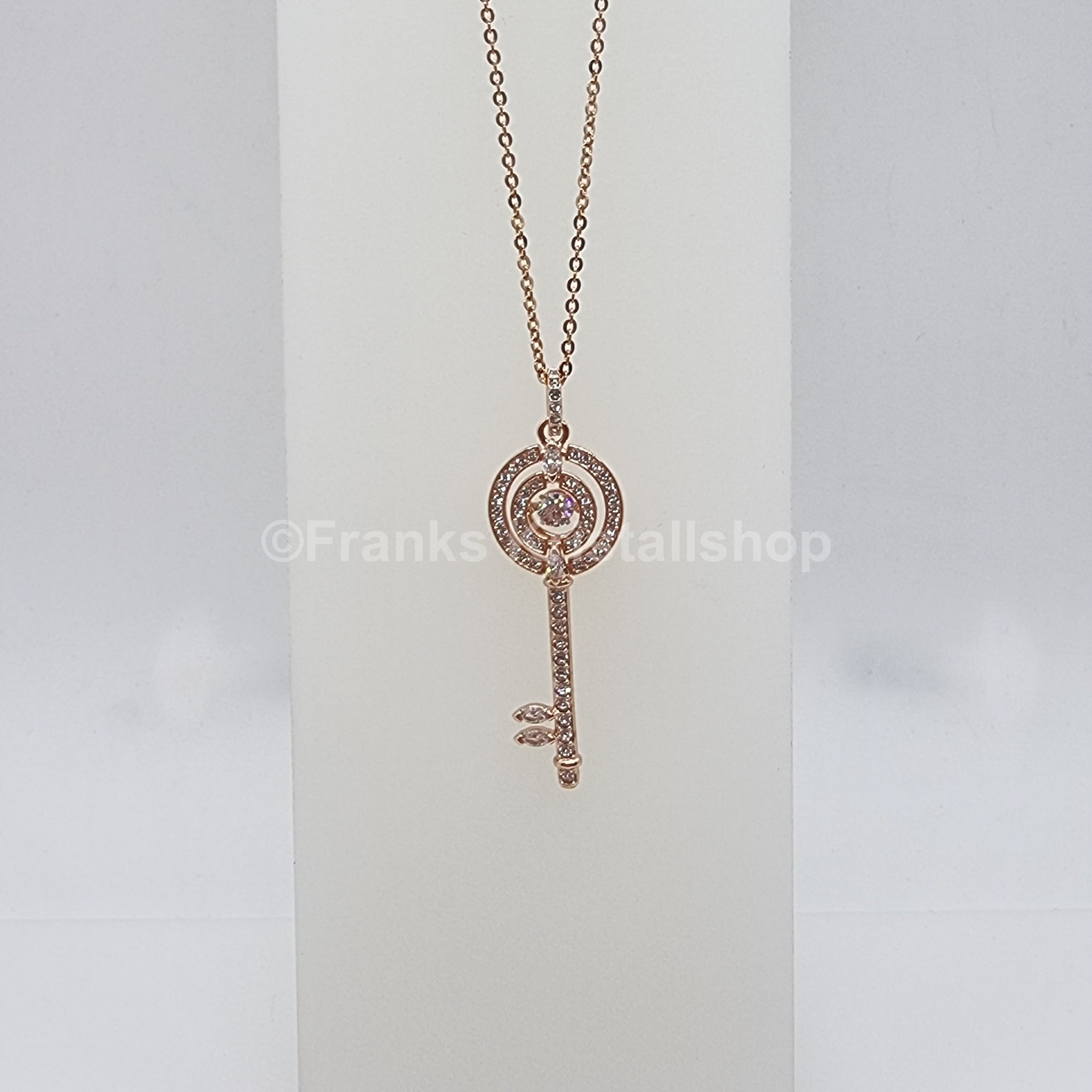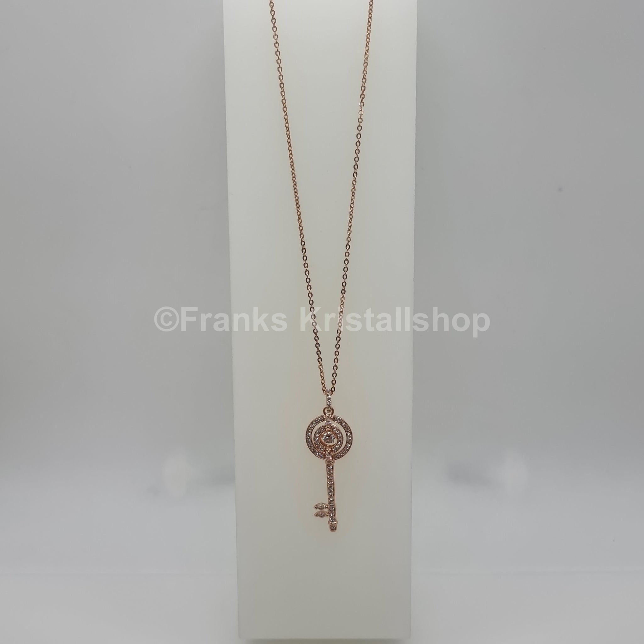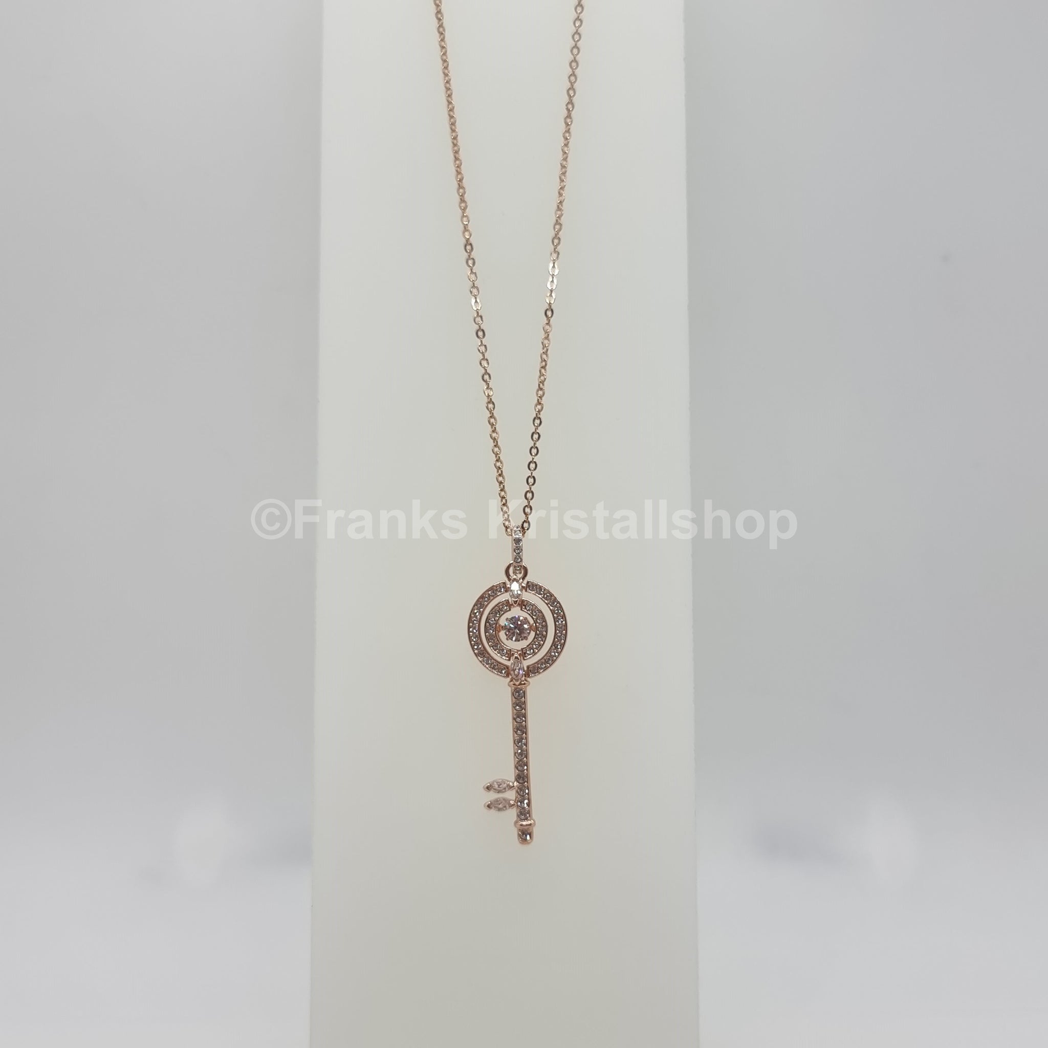 An der Halskette funkelt ein beeindruckender Schlüssel, der mit zahlreichen Swarovski Kristallen besetzt ist. Die Kette strahlt in Roségold-Legierungsschicht.
