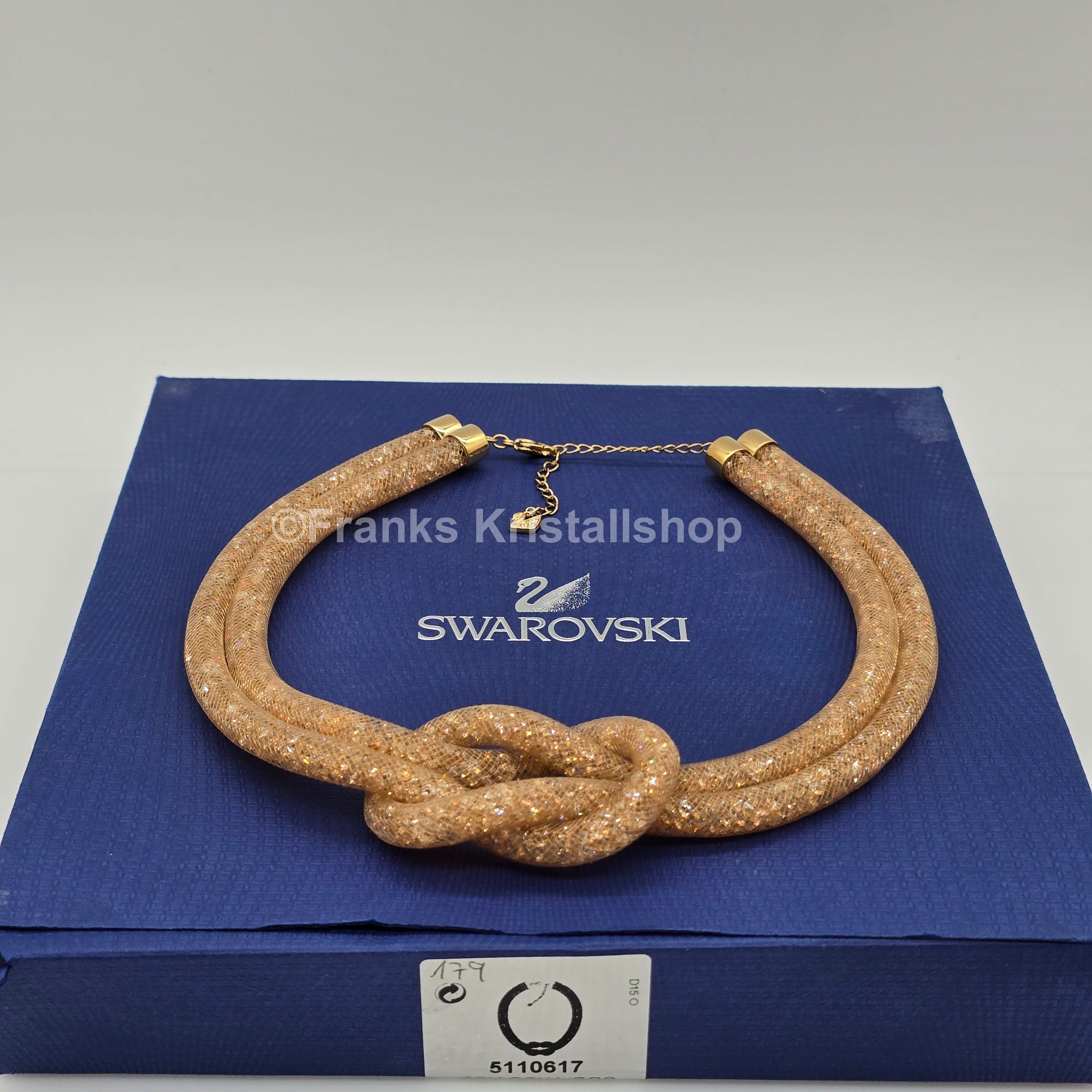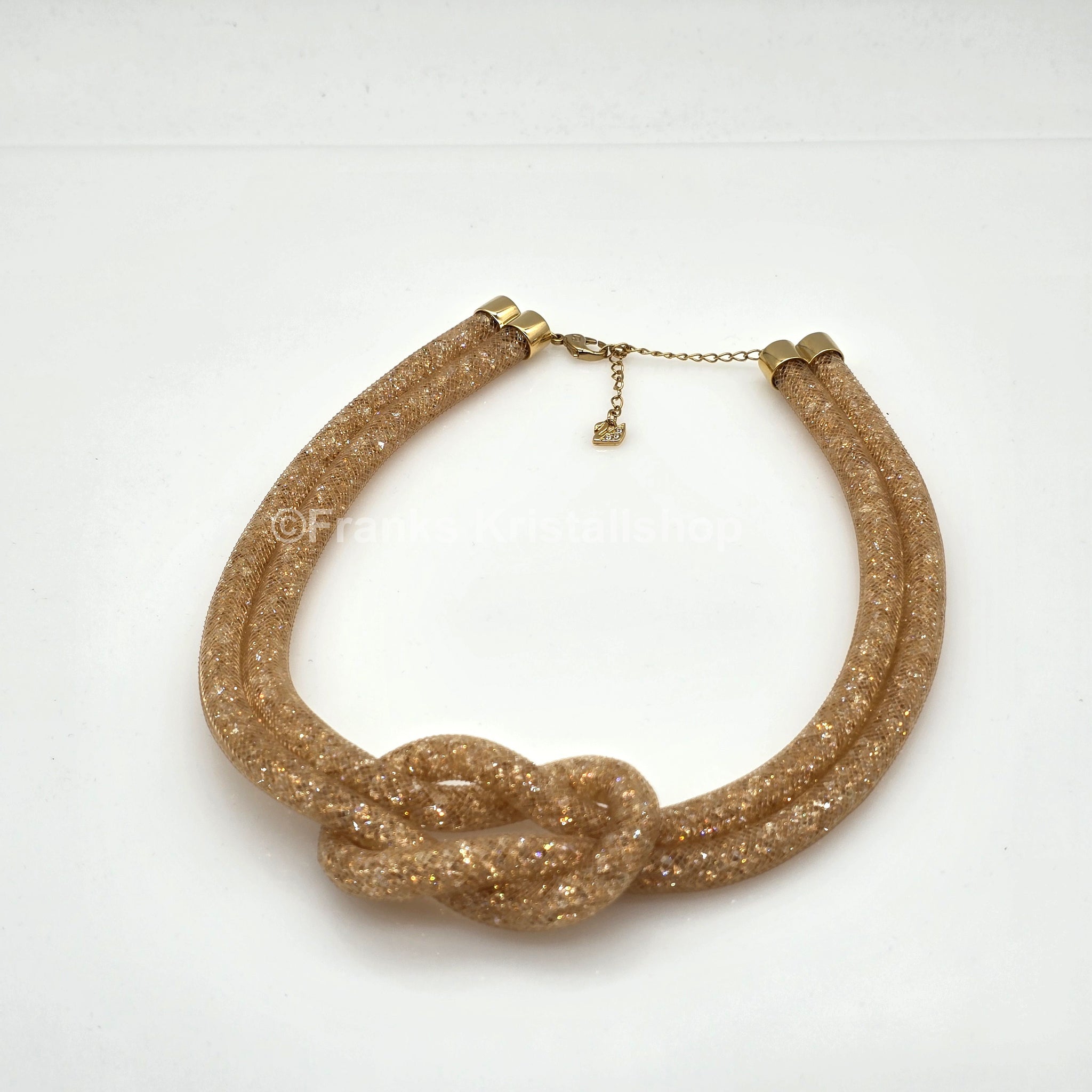Diese raffiniert geknotete Halsketten-Version ergänzt die beliebte Stardust-Armbandkollektion. Die Kette besteht aus einem goldfarbenen, röhrenförmigen Netz, das unzählige funkelnde Kristalle in harmonischen Farbtönen fasst und so einen eleganten Glanz erzeugt. Die 42 cm lange Kette wird durch einen verstellbaren Karabiner-Verschluss abgerundet.