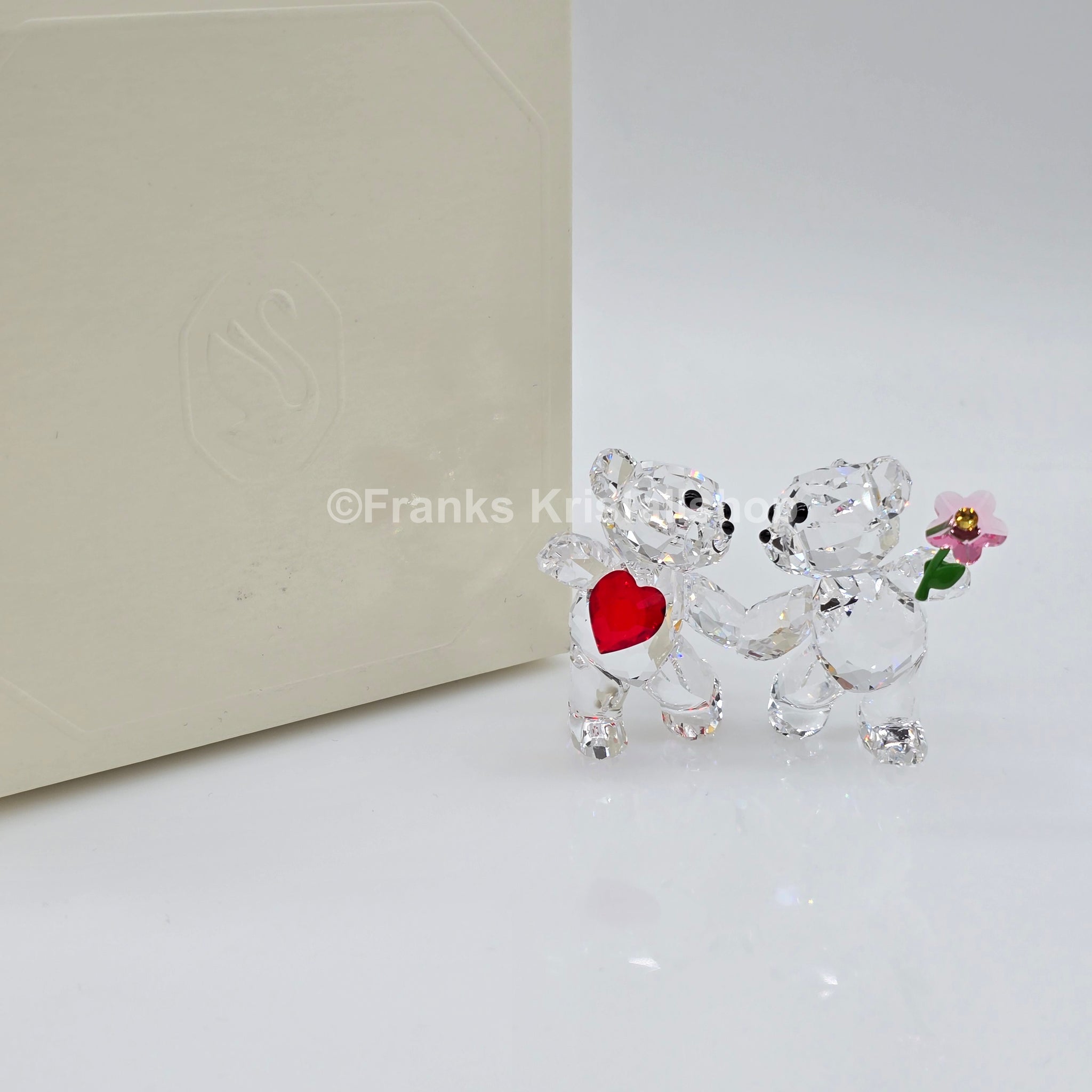 Dieses süße Liebespaar ist die neue Kreation aus der Swarovski Kris Bär Kollektion. Ein Bär trägt ein rotes Herz vor seiner Brust während der andere eine Blume mit rosa Blüte auf grünem Stiel in der Hand hält. Eine bezauberndes Geschenk zur Hochzeit oder eine schöne Liebeserklärung für einen geliebten Menschen.