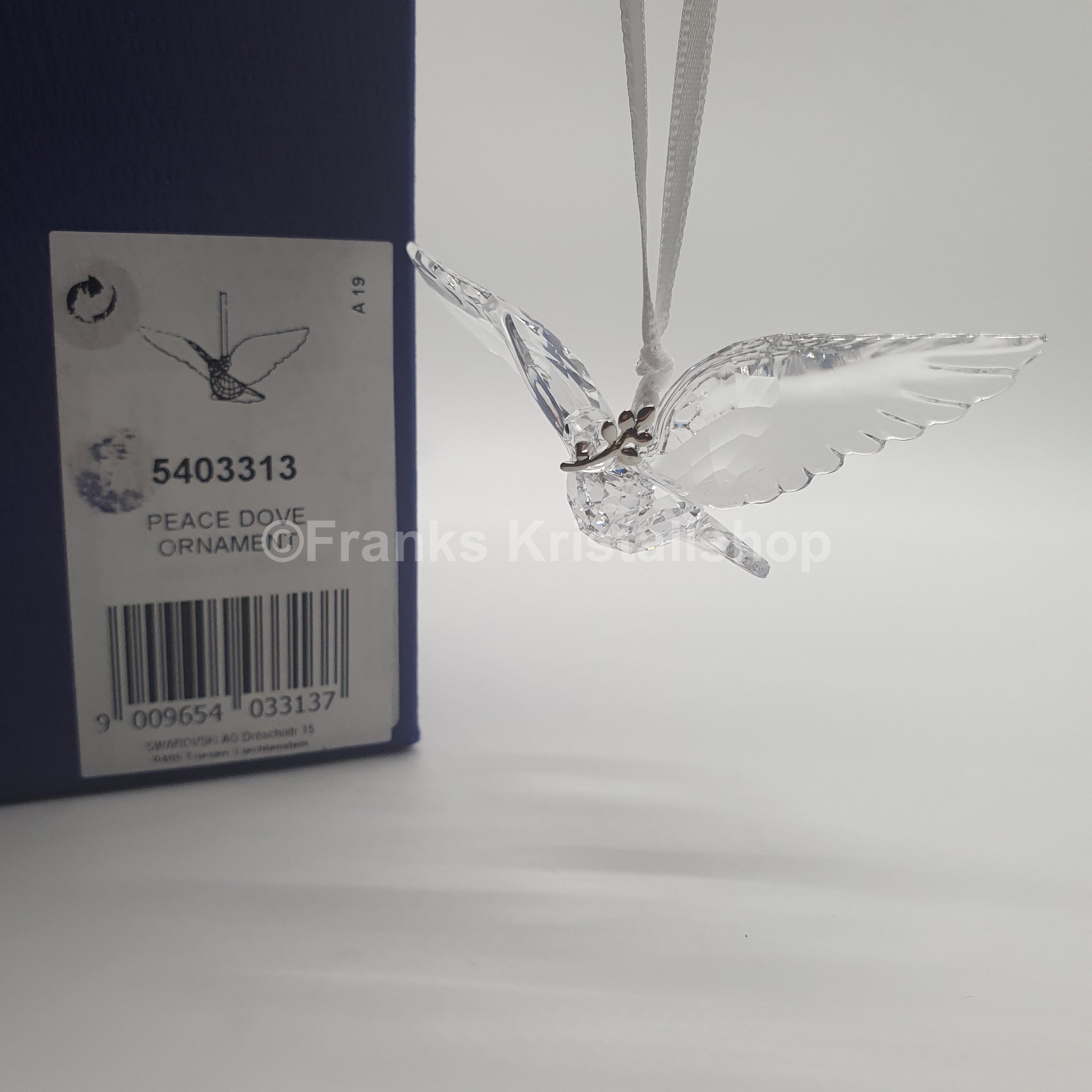 Die Friedenstaube ist der perfekte Botschafter für Frieden und Harmonie. Die funkelnde Swarovski Figur hält einen Olivenzweig in hochpoliertem Metall im Schnabel und hängt an einem weißen Band zum Aufhängen. Diese schöne Figur ist ein ideales Geschenk für alle Swarovski Fans oder ein bezauberndes Sammlerstück.