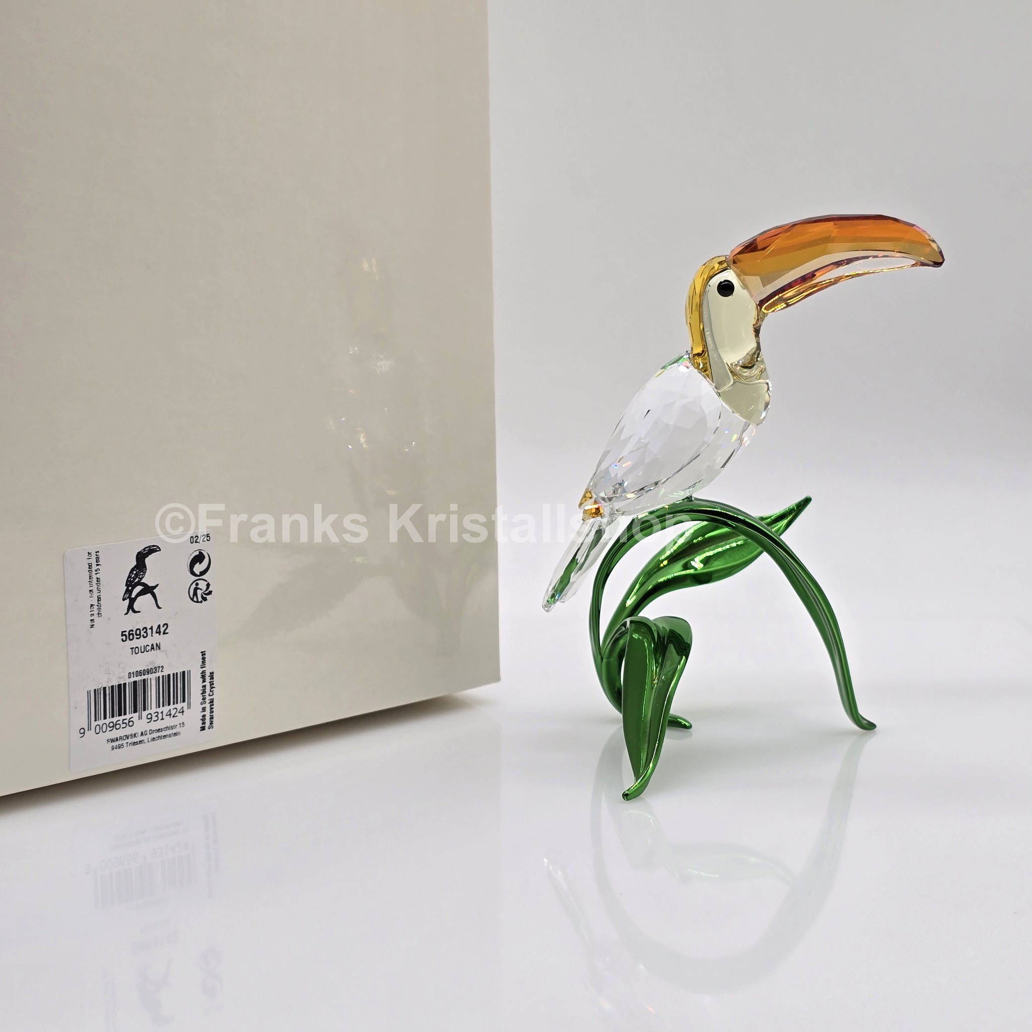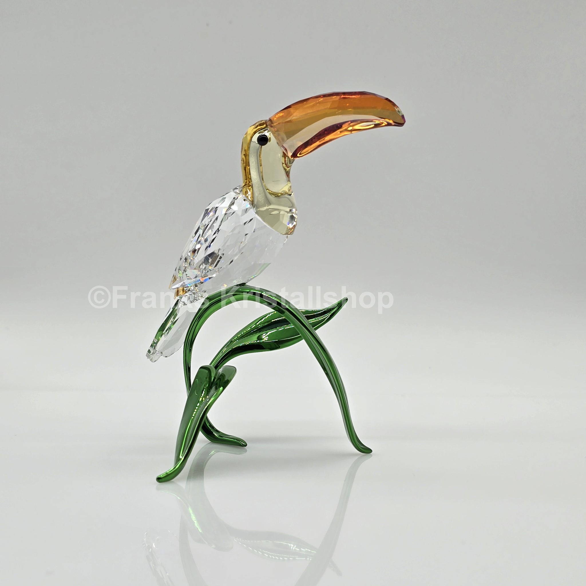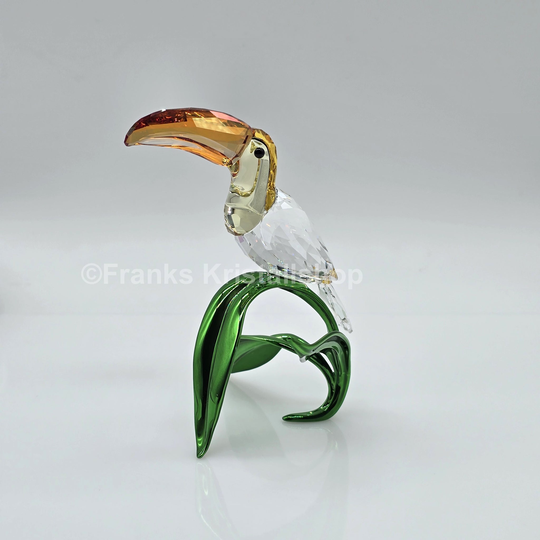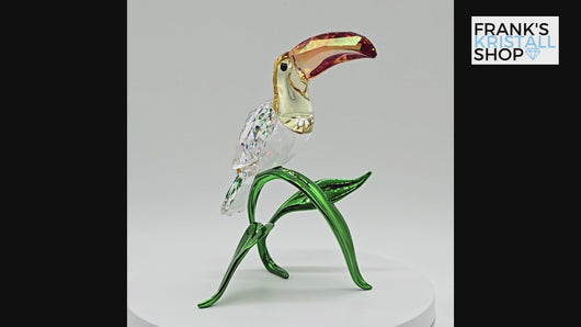 Erleben Sie die Schönheit der Natur mit dem Swarovski Idyllia Tukan. Diese kunstvolle Kristallfigur zeigt die Würde eines tropischen Vogels, der auf einem Nest aus glänzenden Metallblättern sitzt. Diese strahlenden Metallakzente und das farbenfrohe Kristall verleihen der Figur eine beeindruckende Ausdruckskraft.