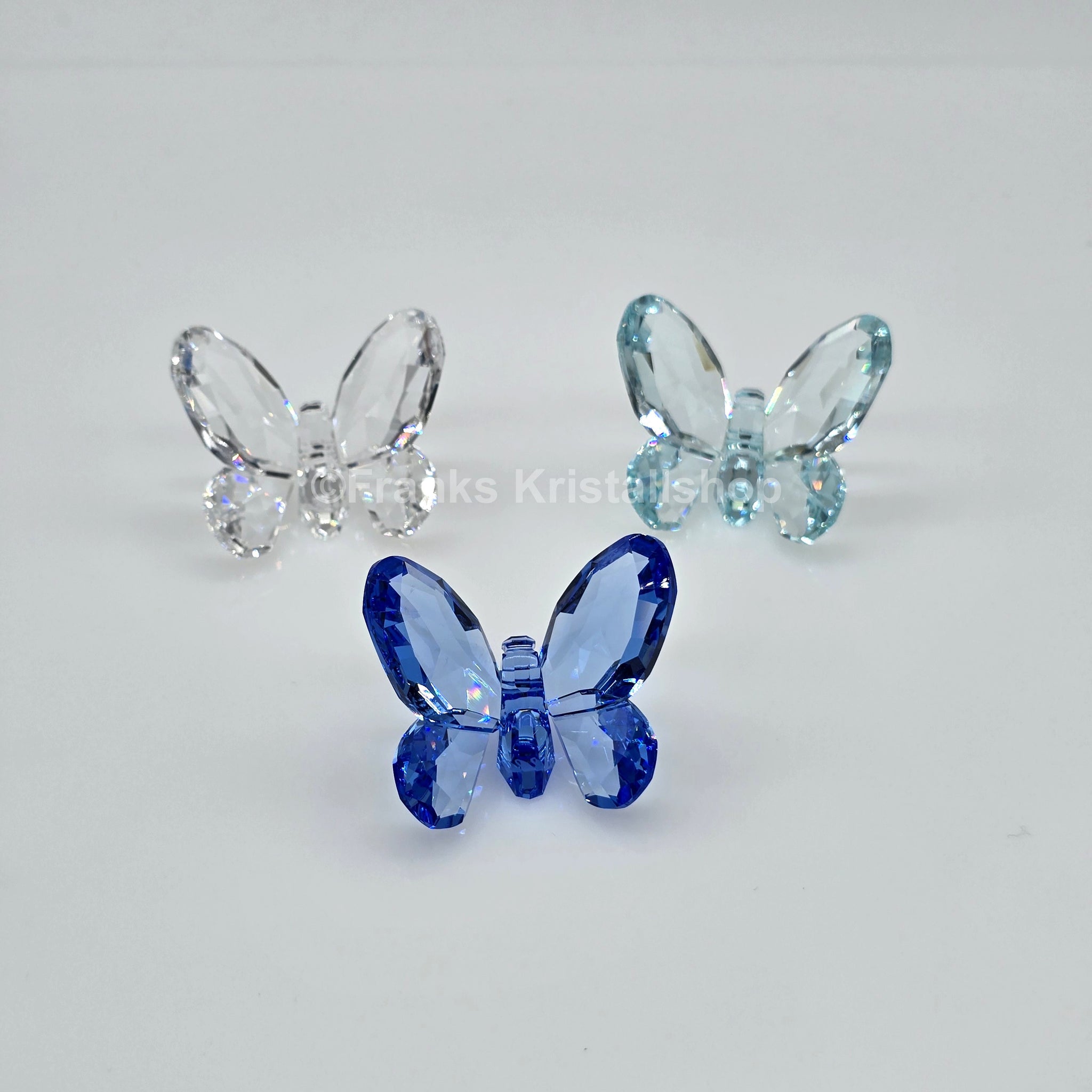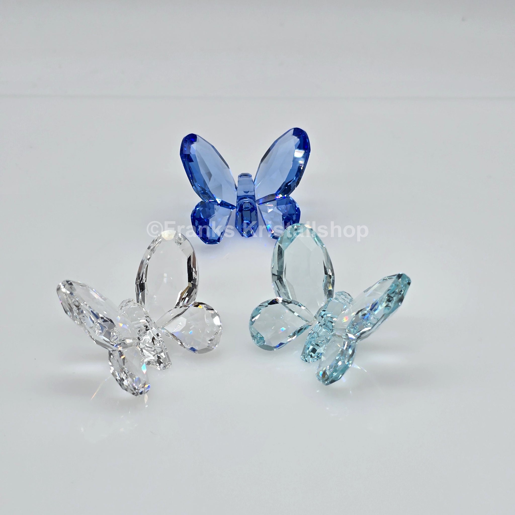 Dieses Trio aus der Kollektion "Funkelnde Schmetterlinge" gab es in zwei verschiedenen Farbausführungen. Dieses Set besteht aus drei Schmetterlingen in den Farben Light Sapphire, Light Azore und Clear Crystal. Das Kristall funkelt in leuchtendem Farbtönen und verleiht jedem Raum einen Hauch von Natur.