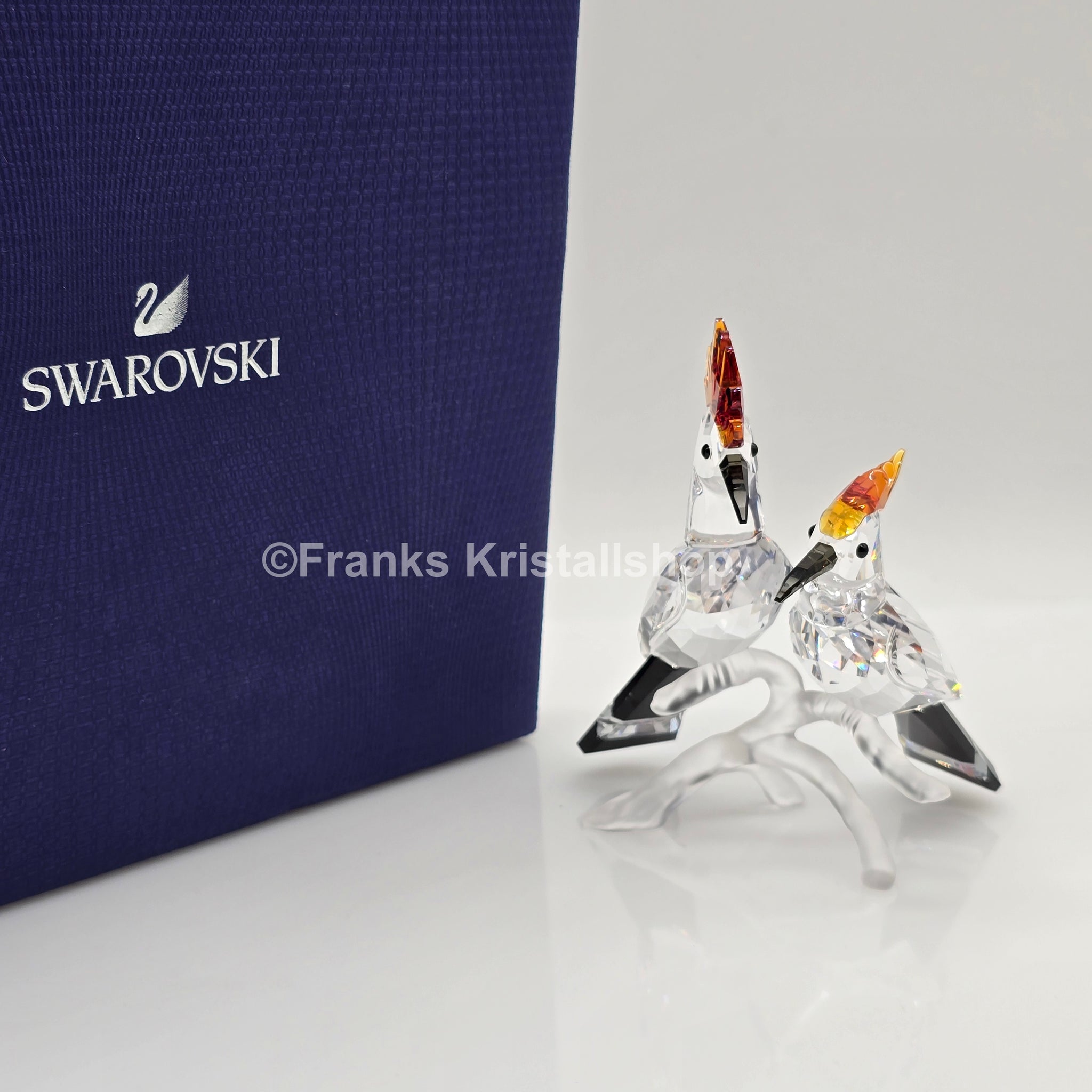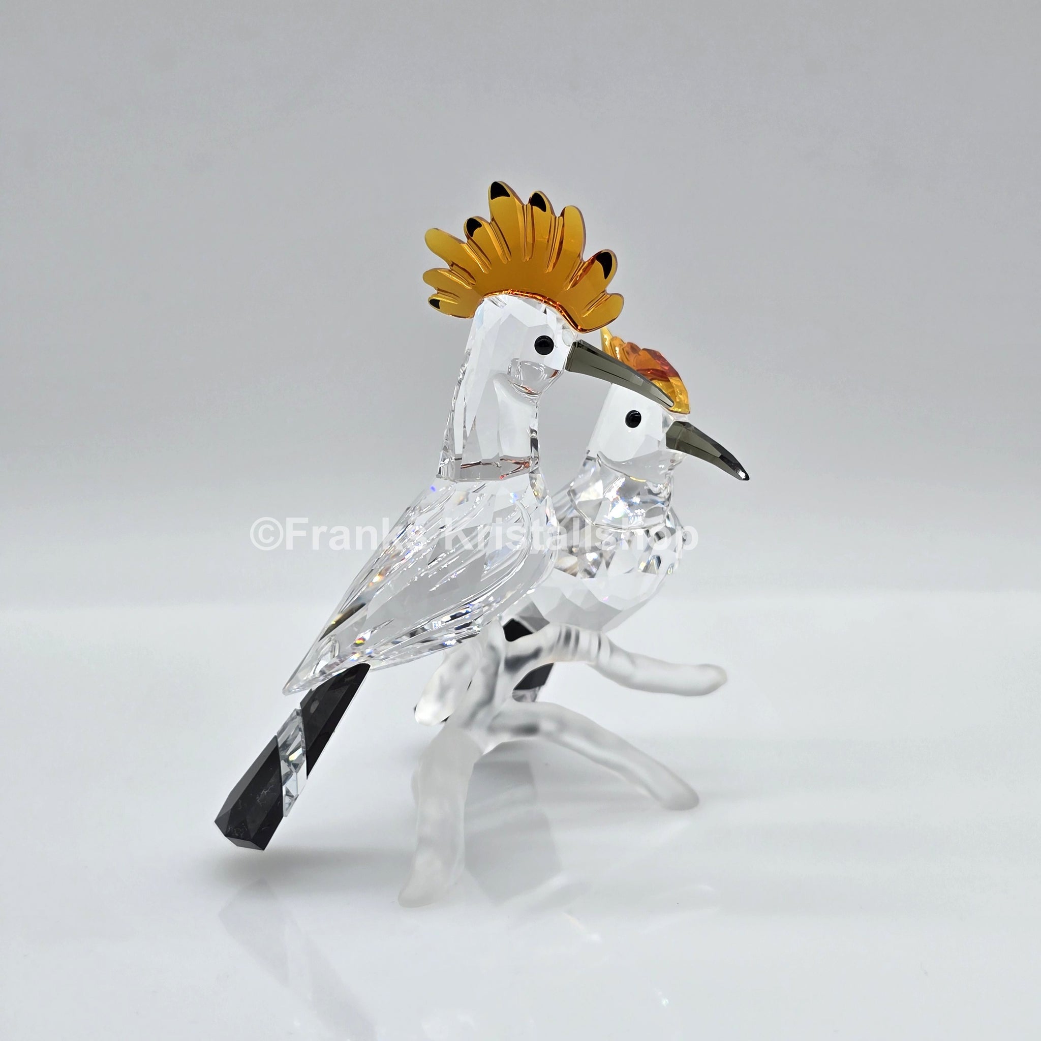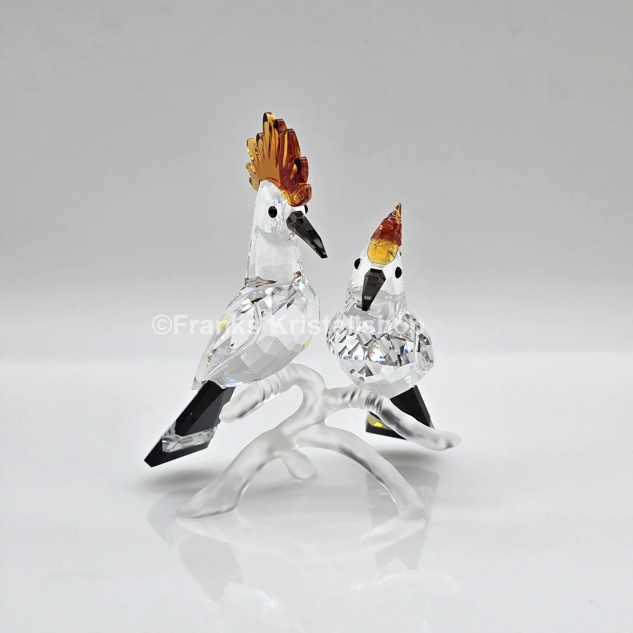 Die Wiedehopfe sind für ihr buntes Gefieder bekannt, farbenfrohe und recht unterhaltsame Vögel. Diese beiden bestehen vollständig aus facettiertem Kristall und haben einem Schnabel aus schwarzem Blackdiamant-Kristall, der Kamm ist mit Topaskristall verziert. Sie waren Teil der Themengruppe "Gefiederte Schönheiten".