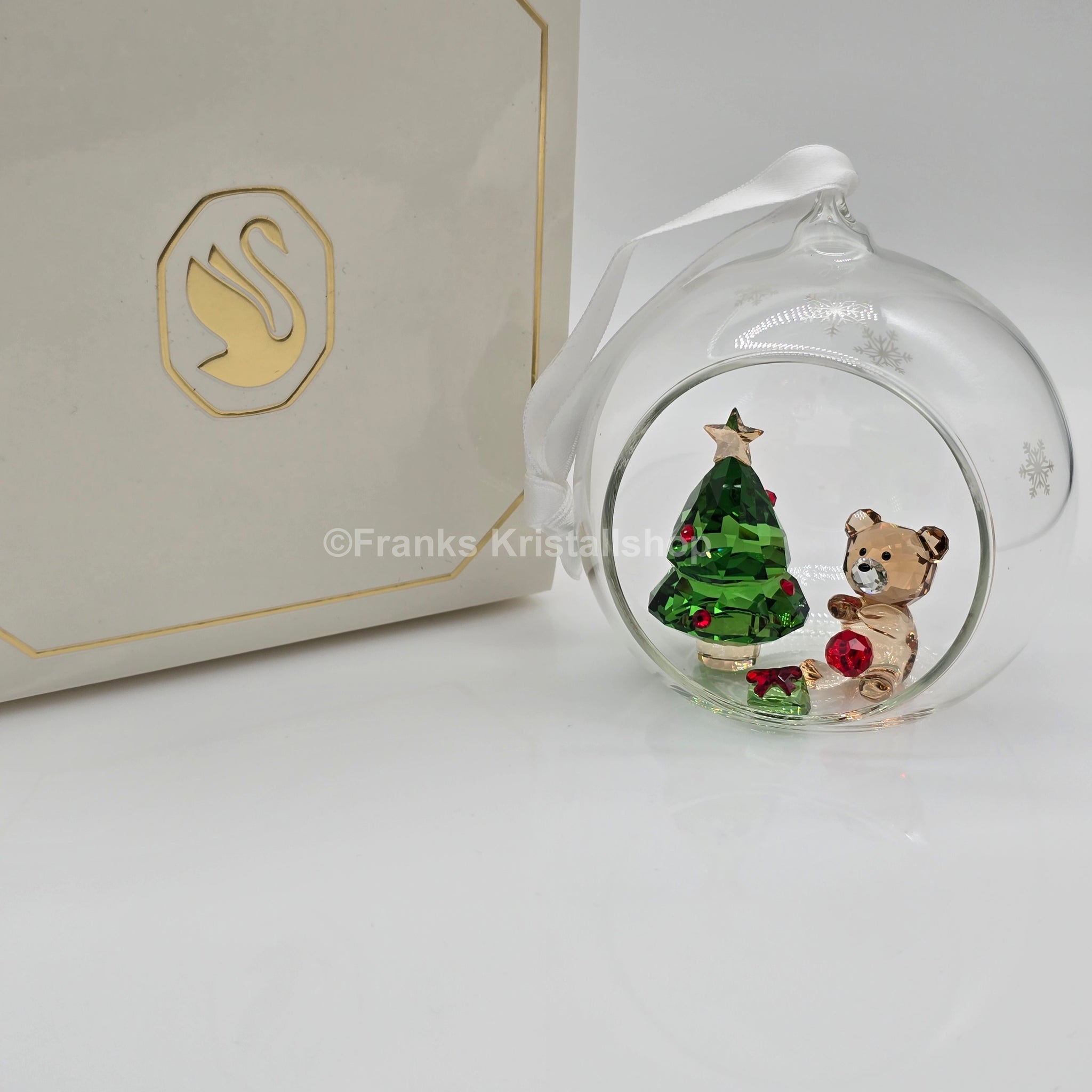 Holen Sie sich diese wunderschöne Swarovski Weihnachtskugel mit einer zauberhaften Weihnachtsszene mit Teddybär, Weihnachtsbaum und Geschenk für die Feiertage. Dieses dekorative Ornament wird garantiert in jedem Raum für eine festliche Atmosphäre sorgen.