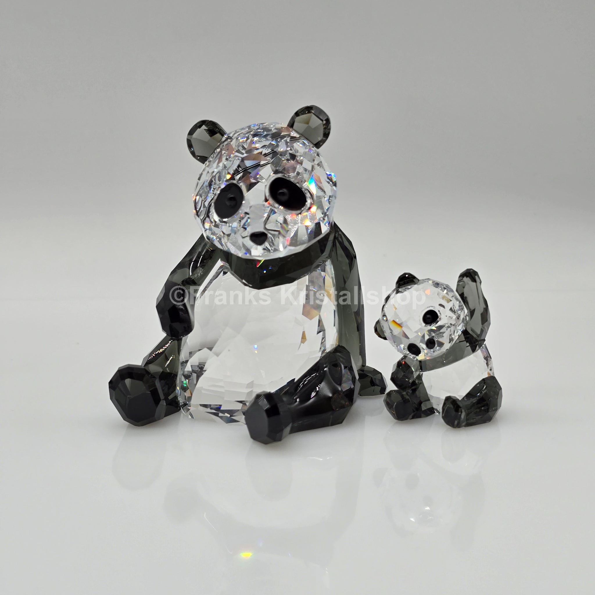 Die Pandamutter mit ihrem Baby war Teil der Themengruppe "Seltene Begegnungen". Die Szene stellt die liebevolle Bindung zwischen Mutter und Kind dar. Beide Figuren funkeln in klarem und schwarzem Kristall.