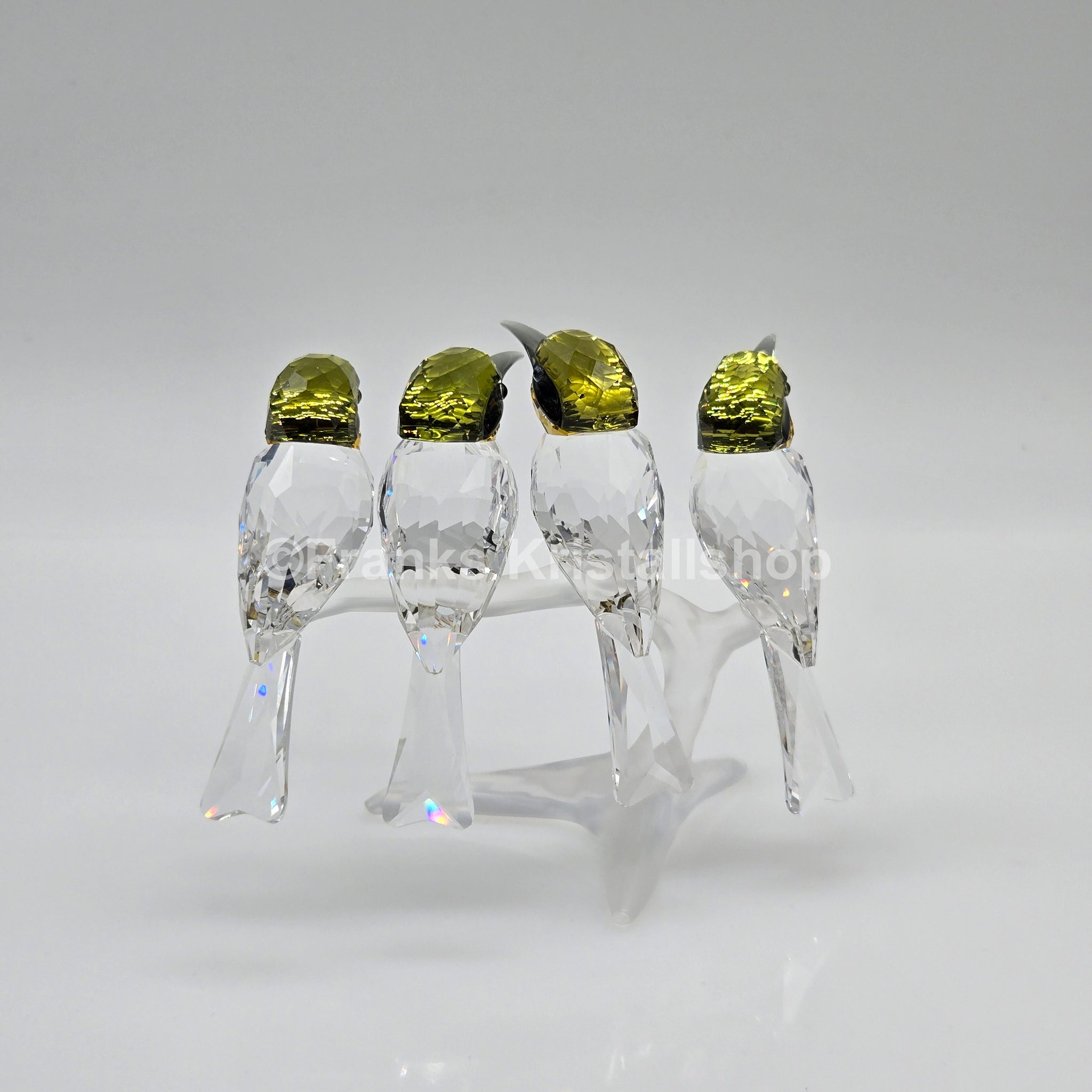 Die Bienenfresser waren Teil der Themengruppe „Gefiederte Schönheiten“. Ihre Körper funkeln in klarem Kristall mit hellen Topas-Kehlen, Olivfarbenen Kronen und schwarzen Schnäbel und Wangen. Sie sitzen auf einem matt-klaren Kristallzweig.