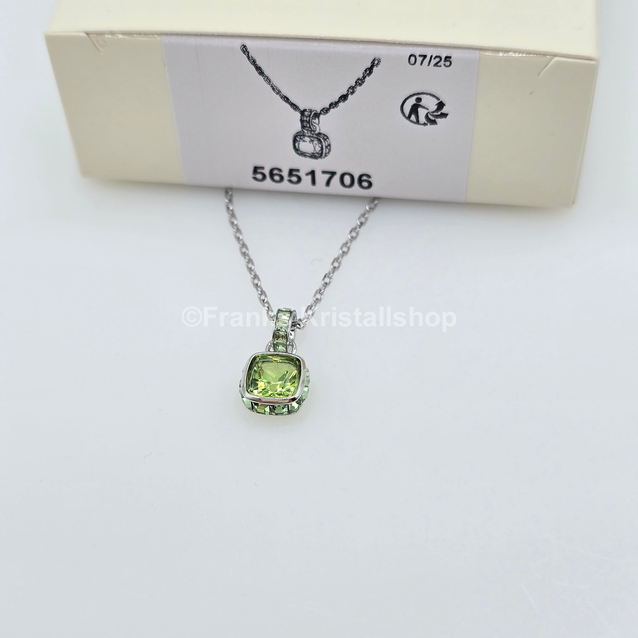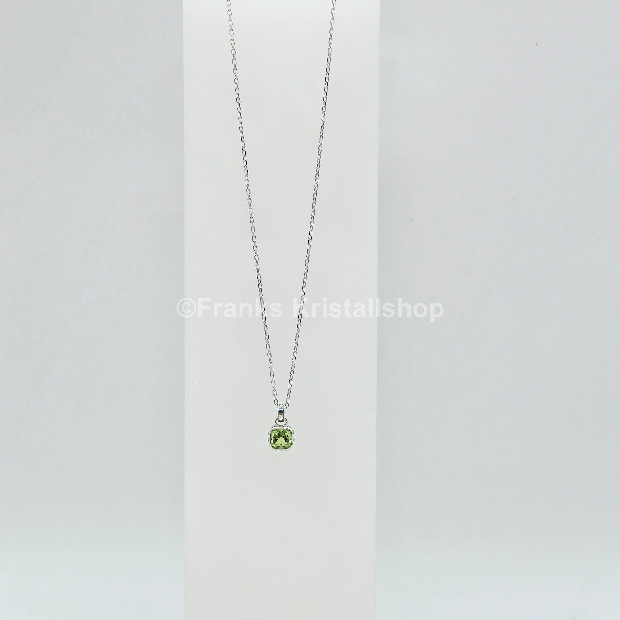 Inspiriert vom Geburtsstein des Monats August erstrahlt dieser filigrane Anhänger in einem Peridot-grünen Farbton. Der leuchtende Kristall hängt an einer feinen, rhodinierten Kette mit funkelnden Kristallgliedern. Ein ausdrucksstarkes Schmuckstück, das ideal als persönliches Geburtstagsgeschenk oder zum Feiern eines besonderen Moments geeignet ist.