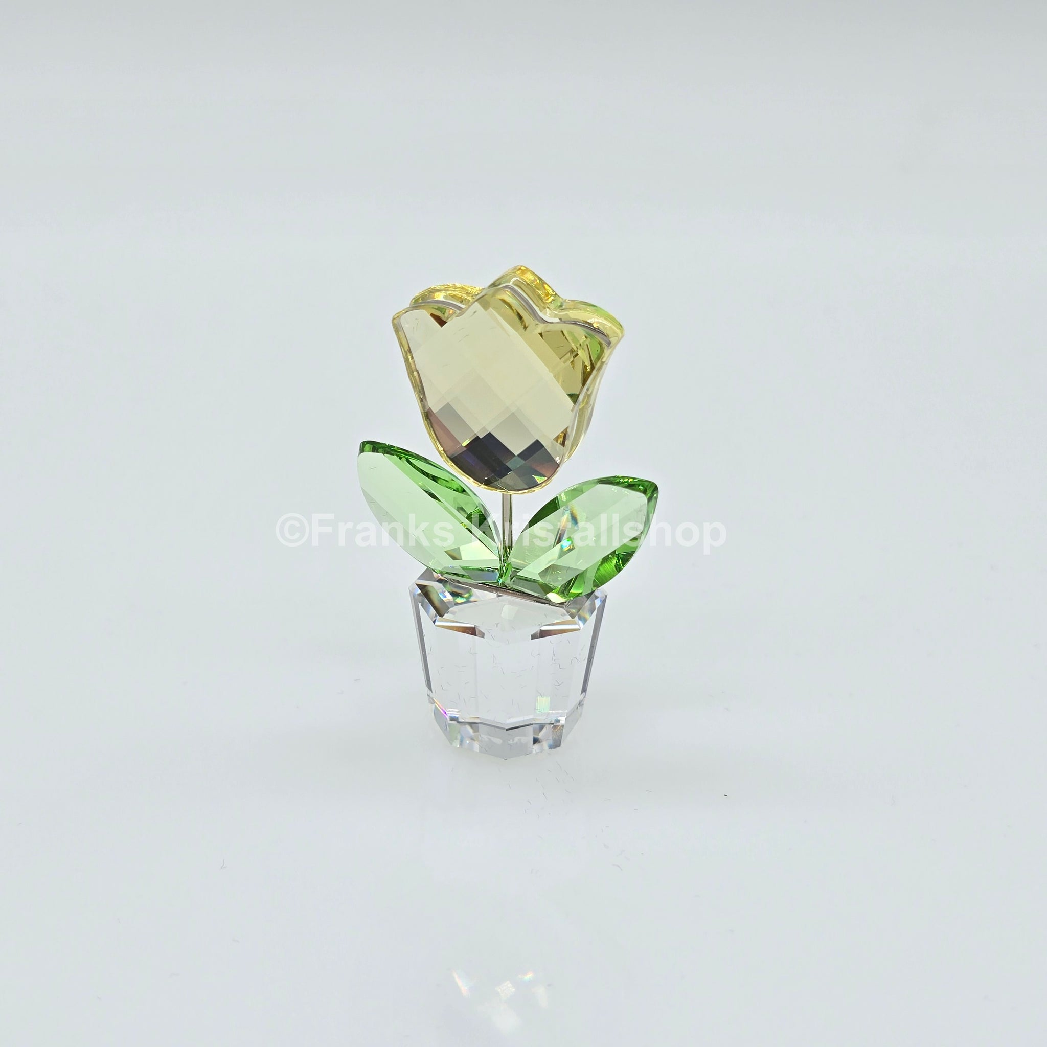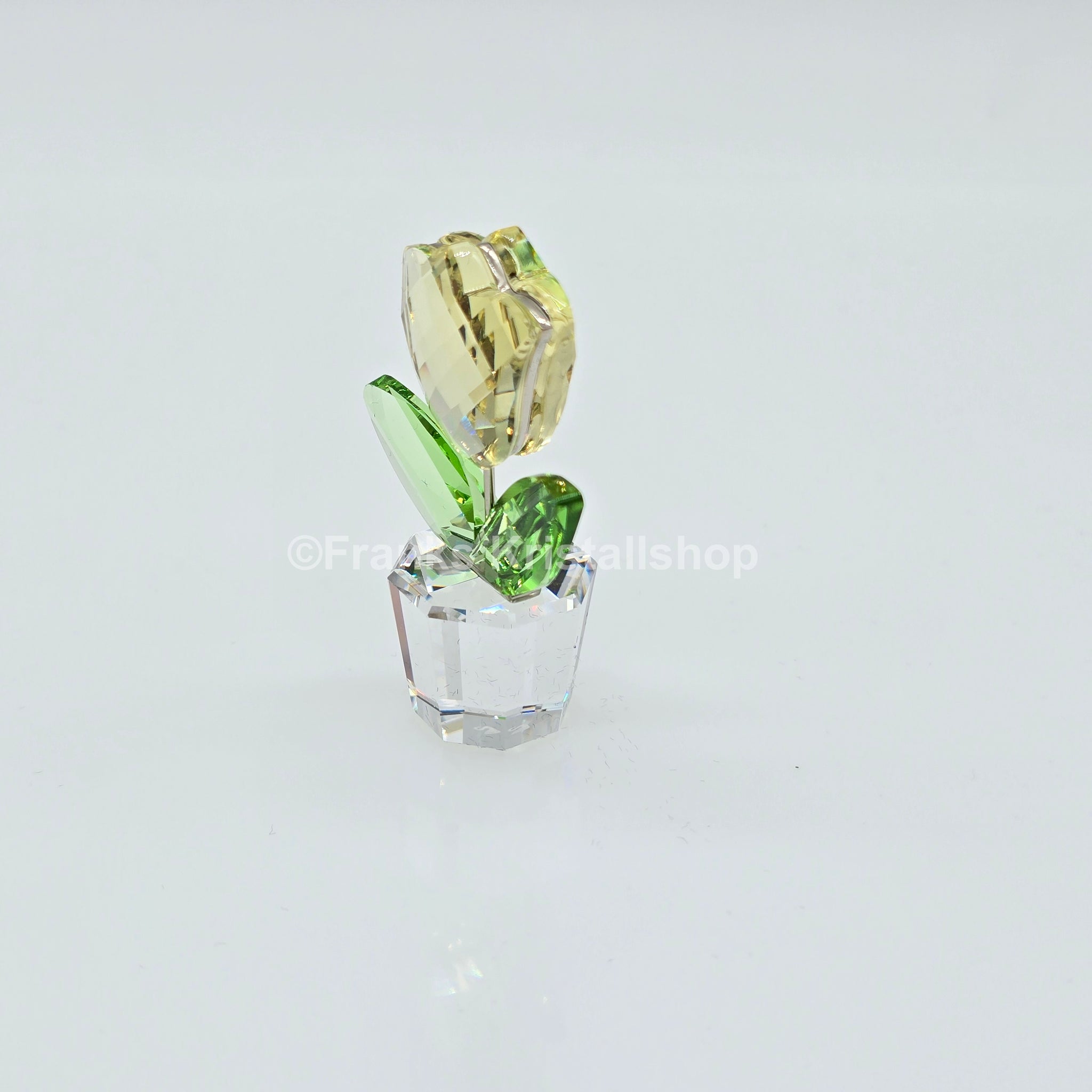 Diese Tulpe gehört zur Themengruppe „Happy Flowers“. Die Farbe der Tulpe ist Gelb in klarem Blumentopf und die Farbe der Blätter ist Peridot.