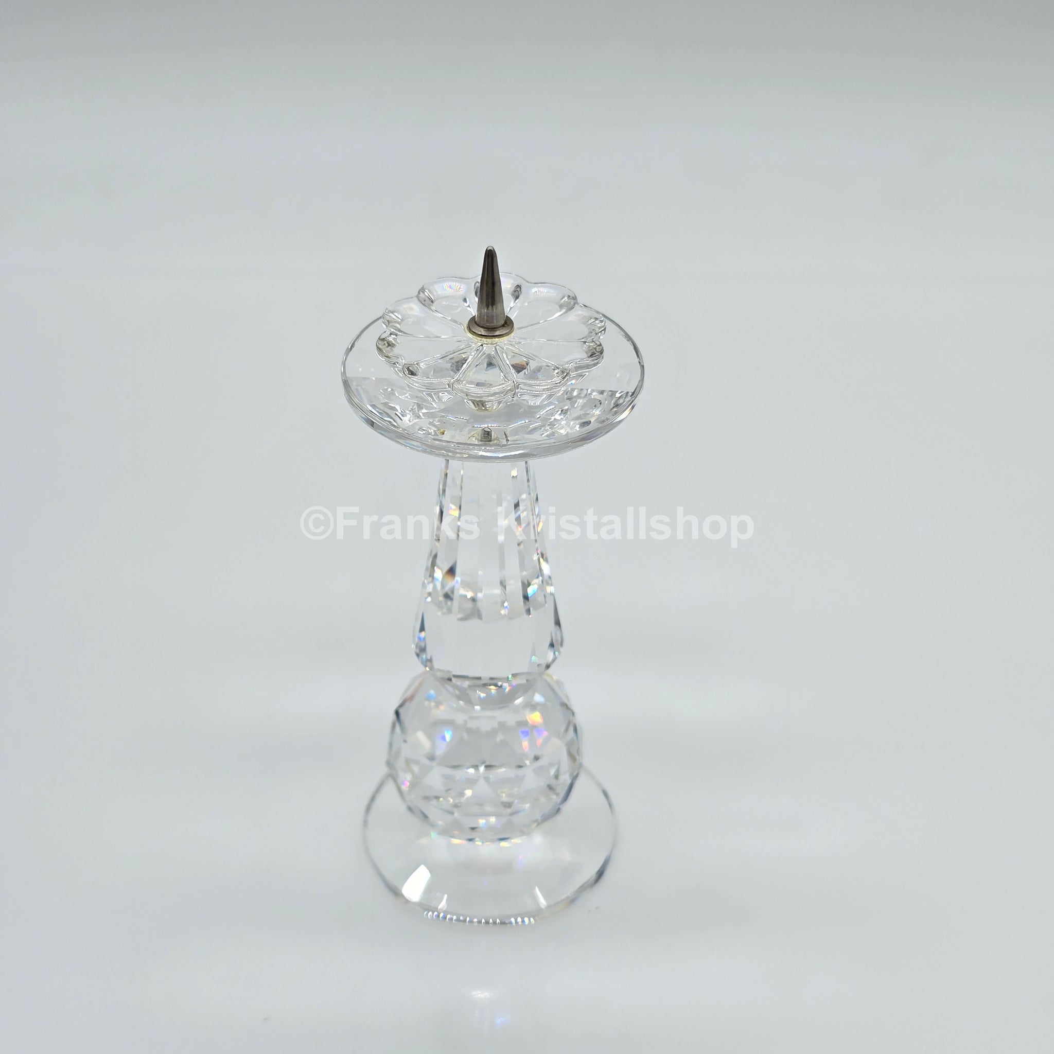 Der Swarovski Kerzenhalter 119 war Teil der Themengruppe "Unsere Kerzenhalter" und hat eine Höhe von ca, 9 cm. Mit einer Metallspitze ist er für eine einzelne Kerze gemacht.