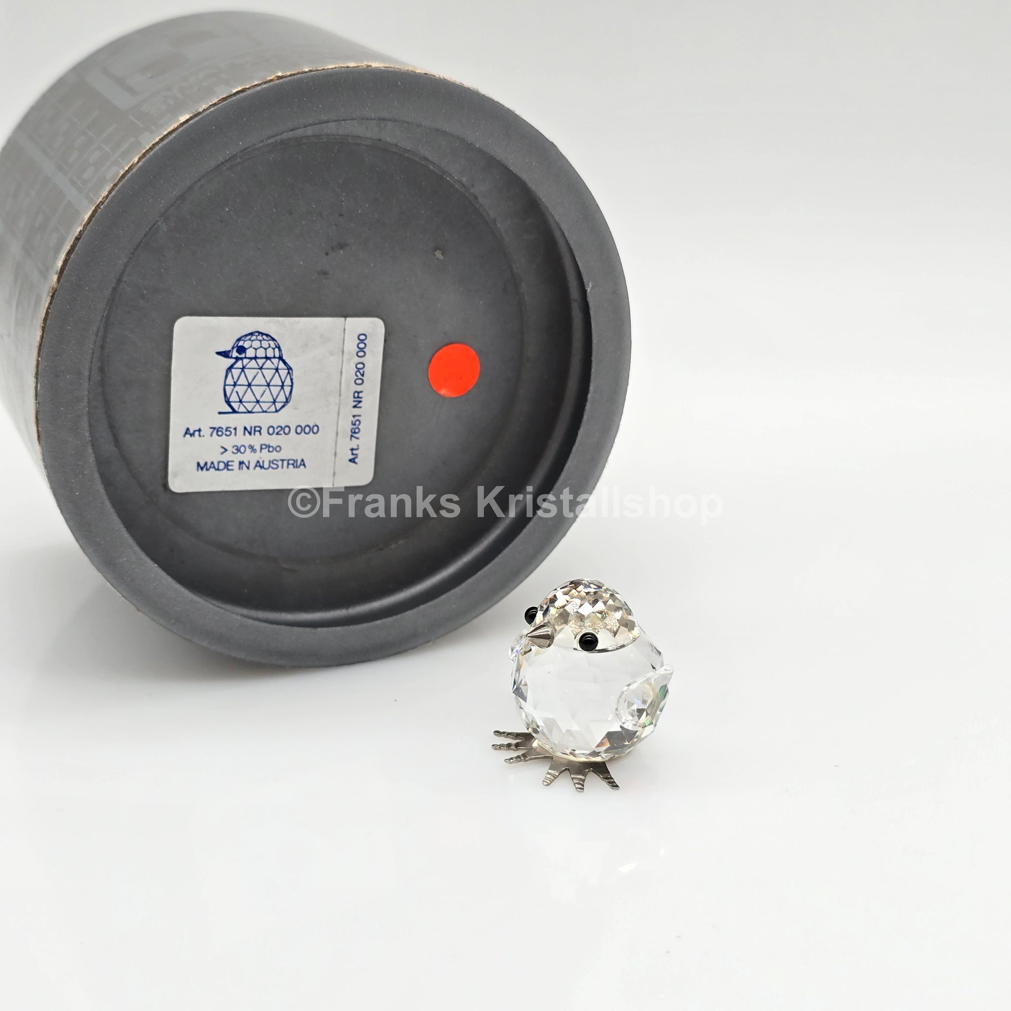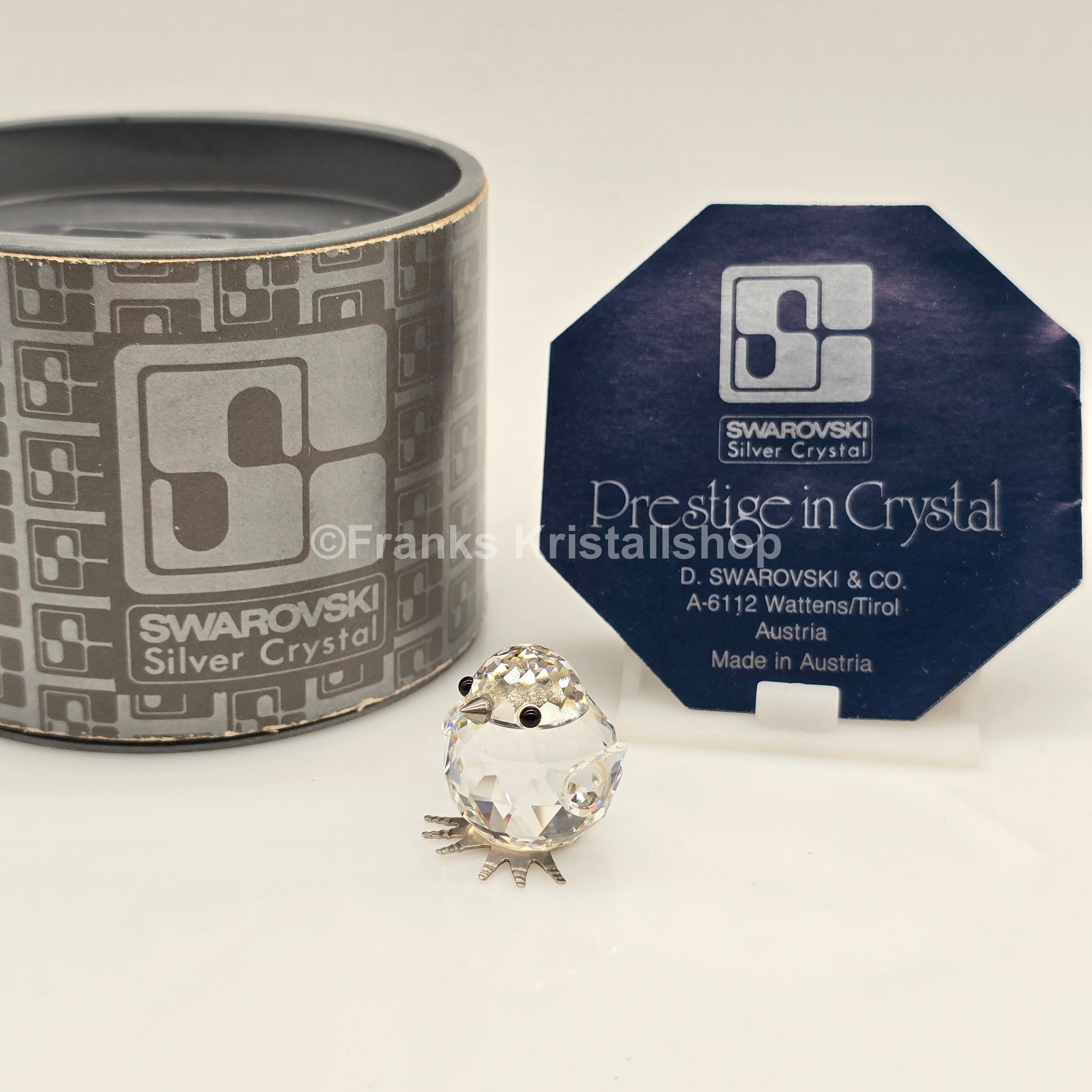 Dieses Küken hat einen klaren Kristallkörper mit Rhodium Füßen und Rhodium Schnabel. Es ist eine der ersten Tierfiguren, die Swarovski hergestellt hat.