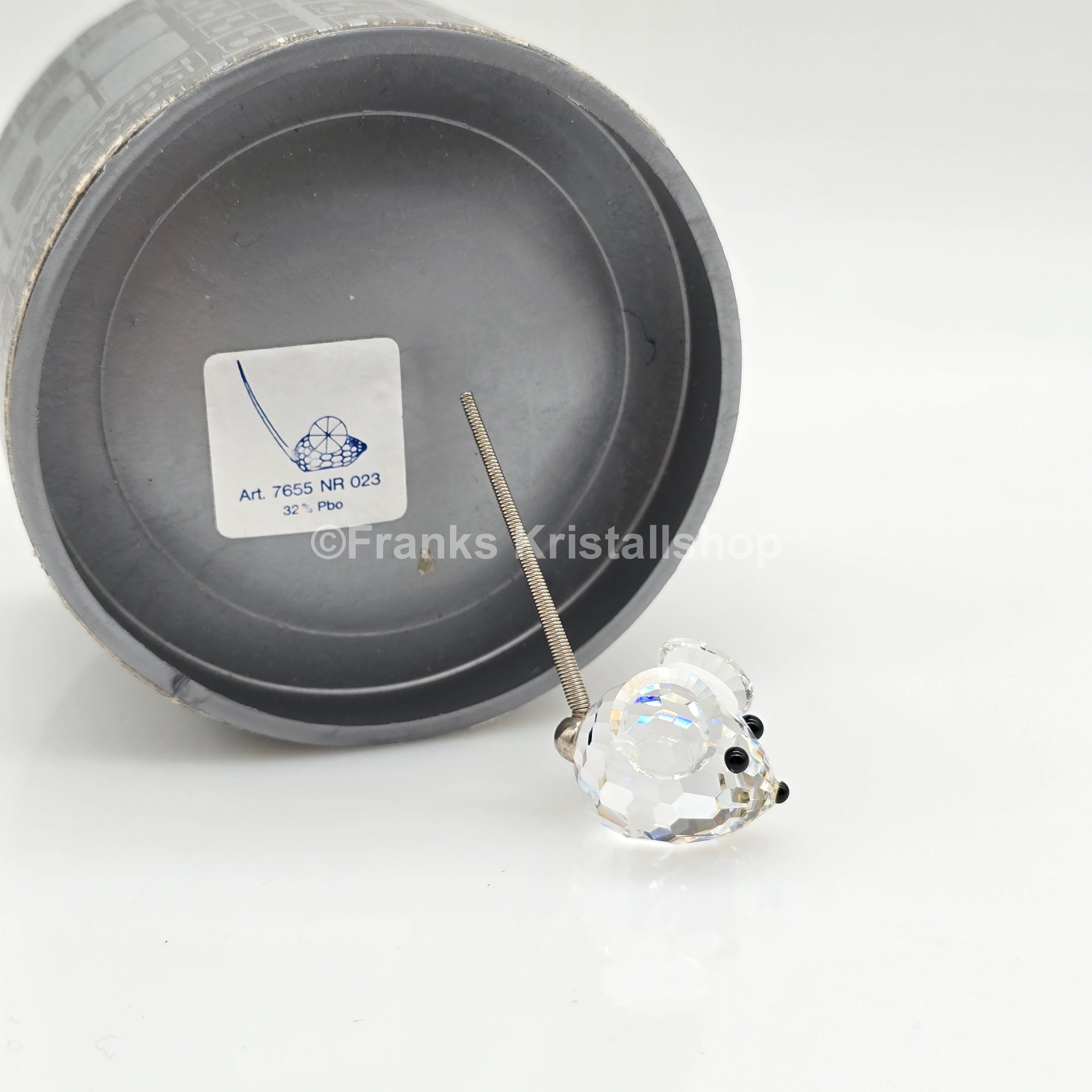 Diese kleine Maus gab es 1993 anlässlich eines Swarovski Galadinners. Der fein gearbeitete Schwanz besteht aus einer Metallfeder, die runden Ohren verleihen der Figur einen charmanten Ausdruck.