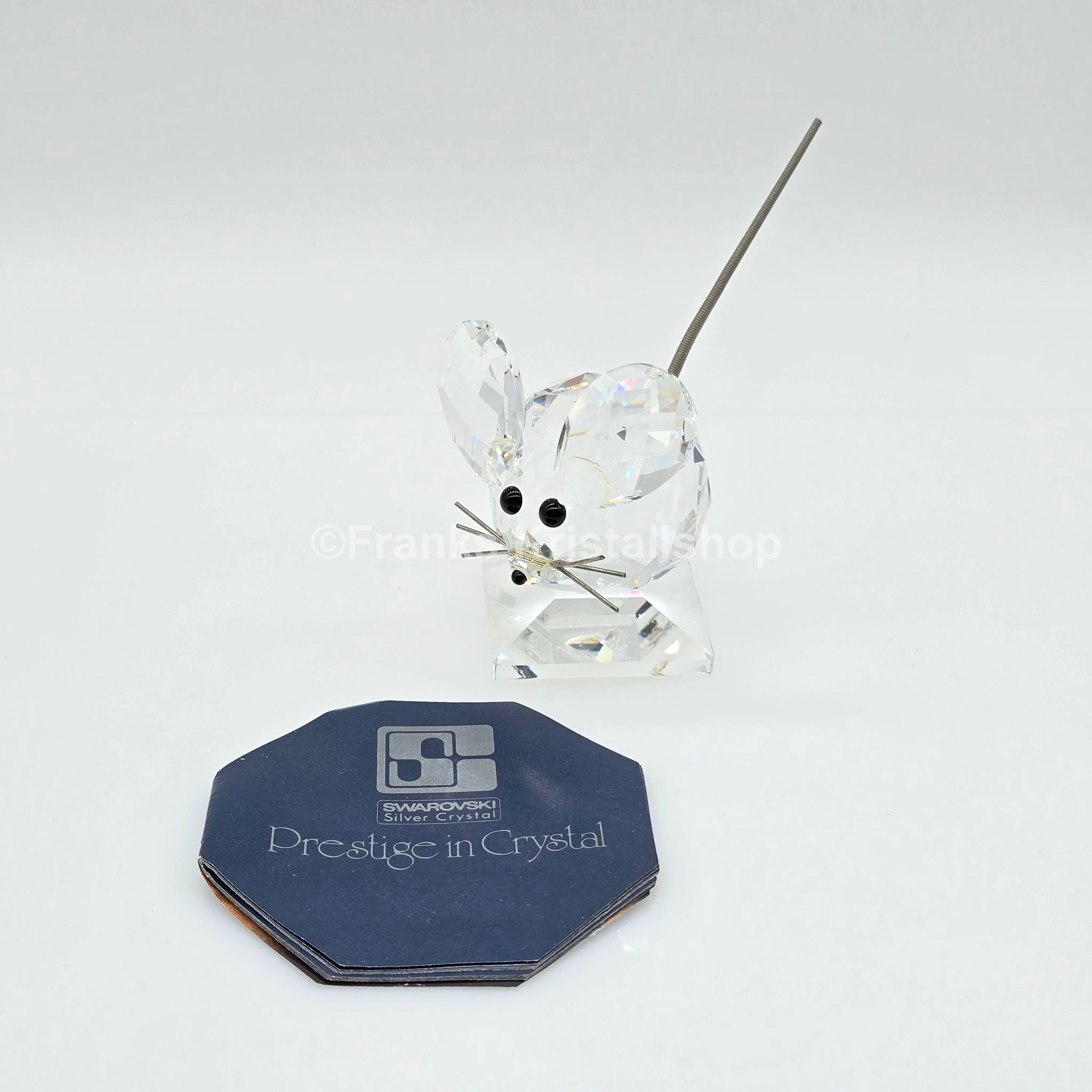 Diese Maus aus der Swarovski Kollektion „Auf der Sommerwiese“ war das erste Tier, das Swarovski herstellte. Es ist aus klarem Kristall gefertigt und steht auf einem quadratischen Sockel. Der fein gearbeitete Schwanz besteht aus einer Metallfeder, die langen Ohren verleihen der Figur ihren charmanten Ausdruck.