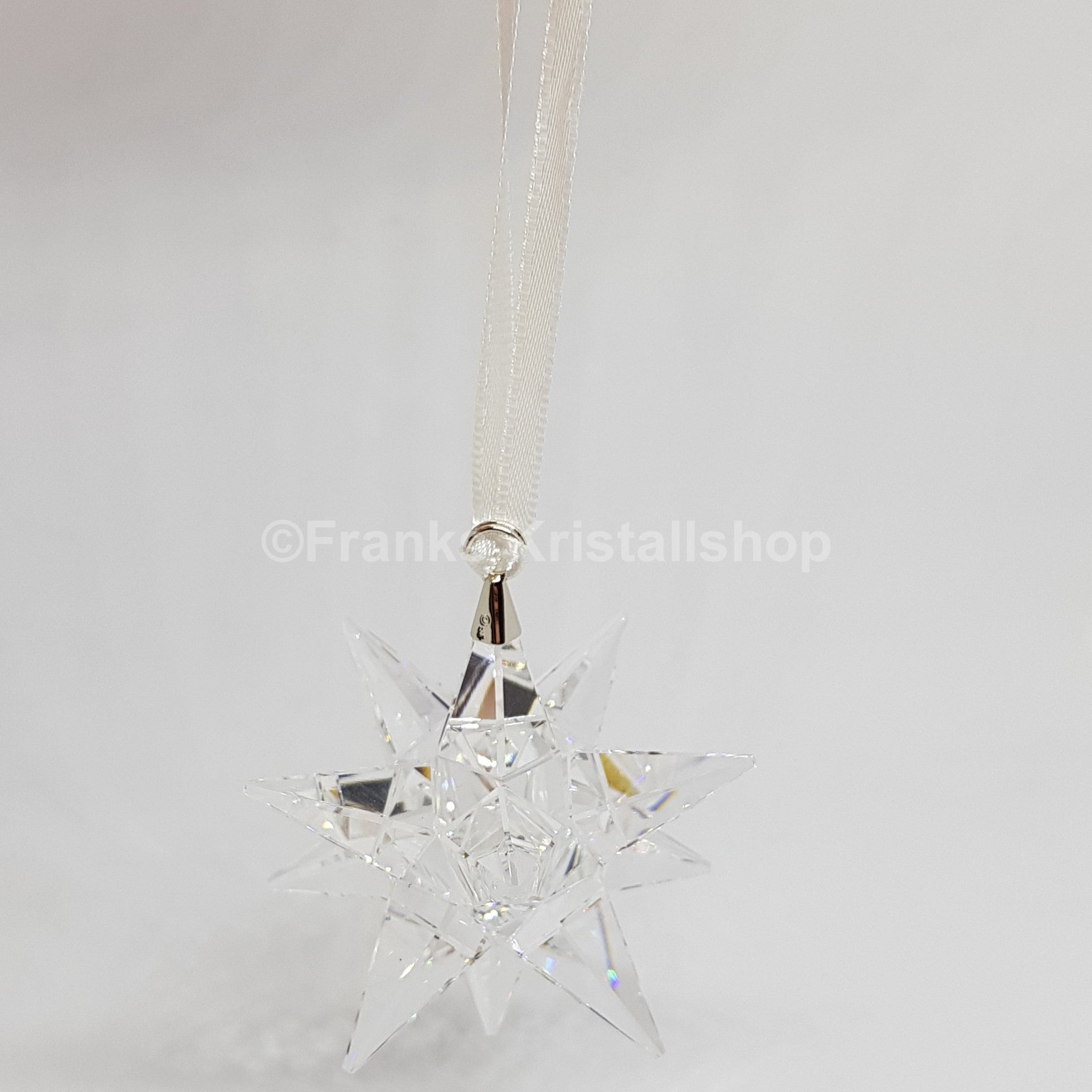 Dieses edle 3D-Stern-Ornament aus klarem Kristall fängt das Licht auf faszinierende Weise ein und sorgt für funkelnde Akzente. Aufgehängt an einem weißen Satinband wird es zu einem stilvollen Highlight Ihrer Winter- oder Weihnachtsdekoration.