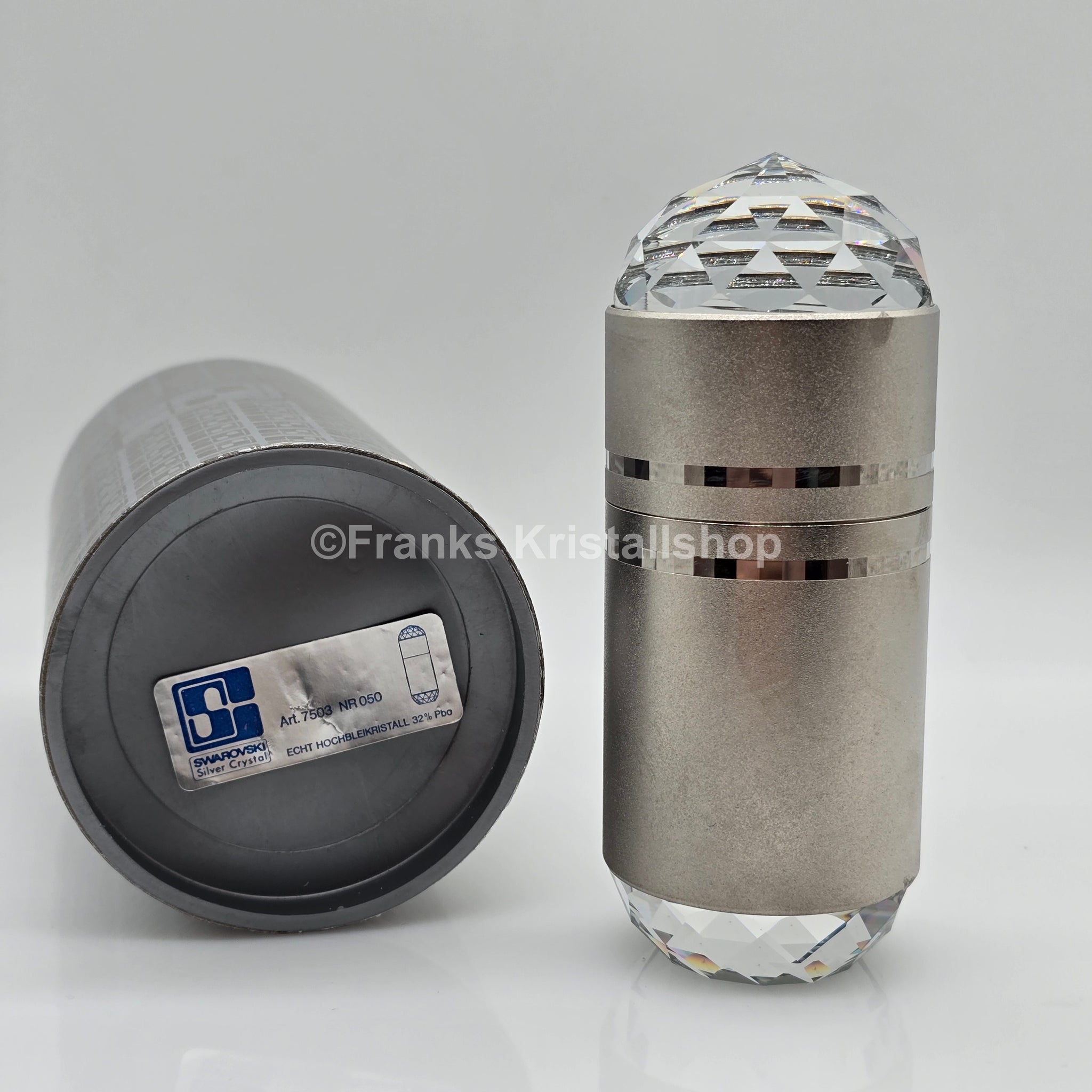 Sie haben hier die Möglichkeit, eine absolute Rarität aus den Anfängen der Swarovski Produktion zu erwerben. Dieser Zigarettenhalter besteht aus einem breiten Band aus rhodiniertem, gebürstetem Metall und ist oben und unten mit einem großen Kristall verziert. Der Zigarettenhalter ist unbenutzt, in sehr gutem Zustand und sicher ein Highlight in Ihrer Sammlung.